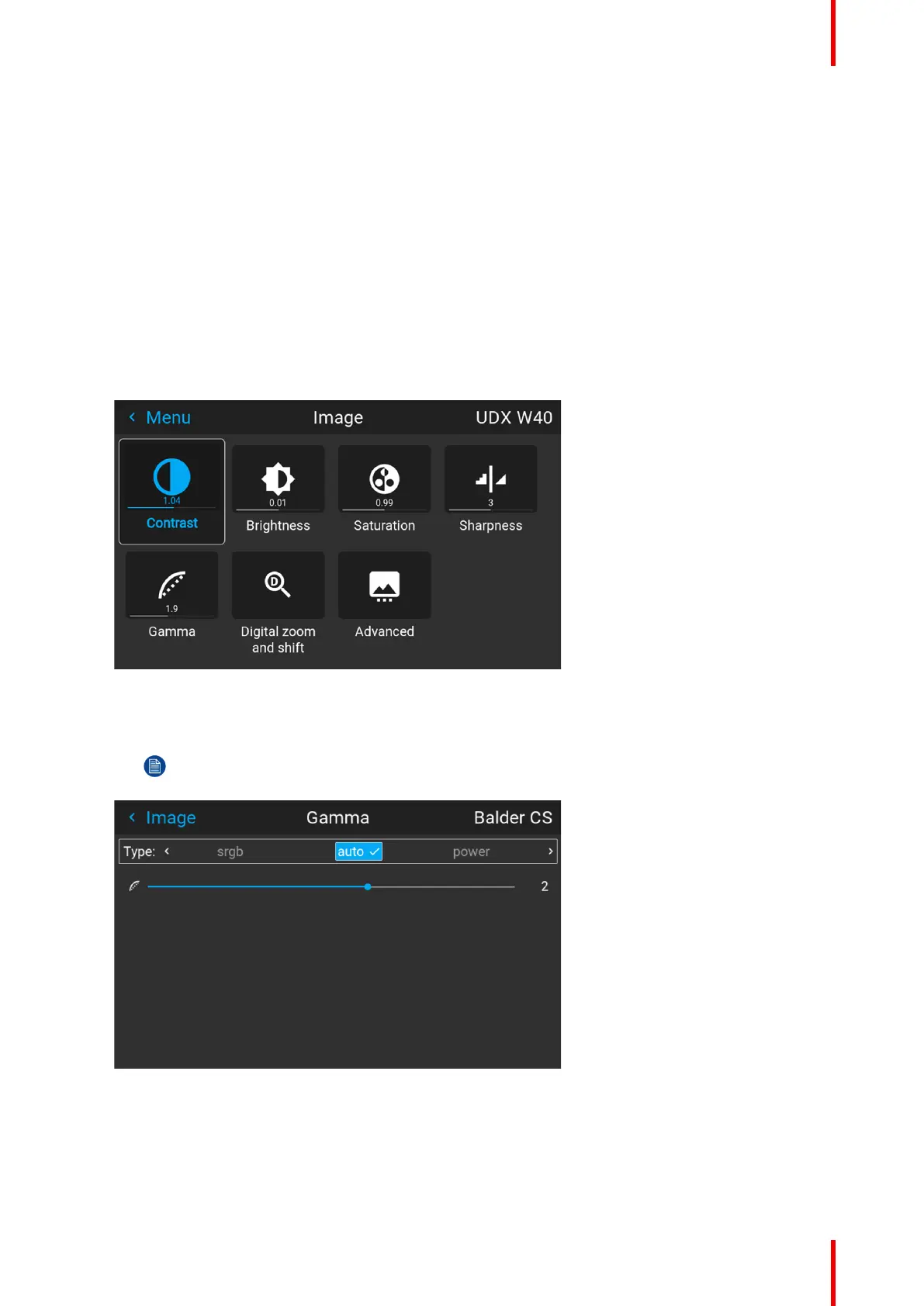 Note: The Gamma slider in the Gamma menu will be disabled when DICOM, SIM or SRGB values is