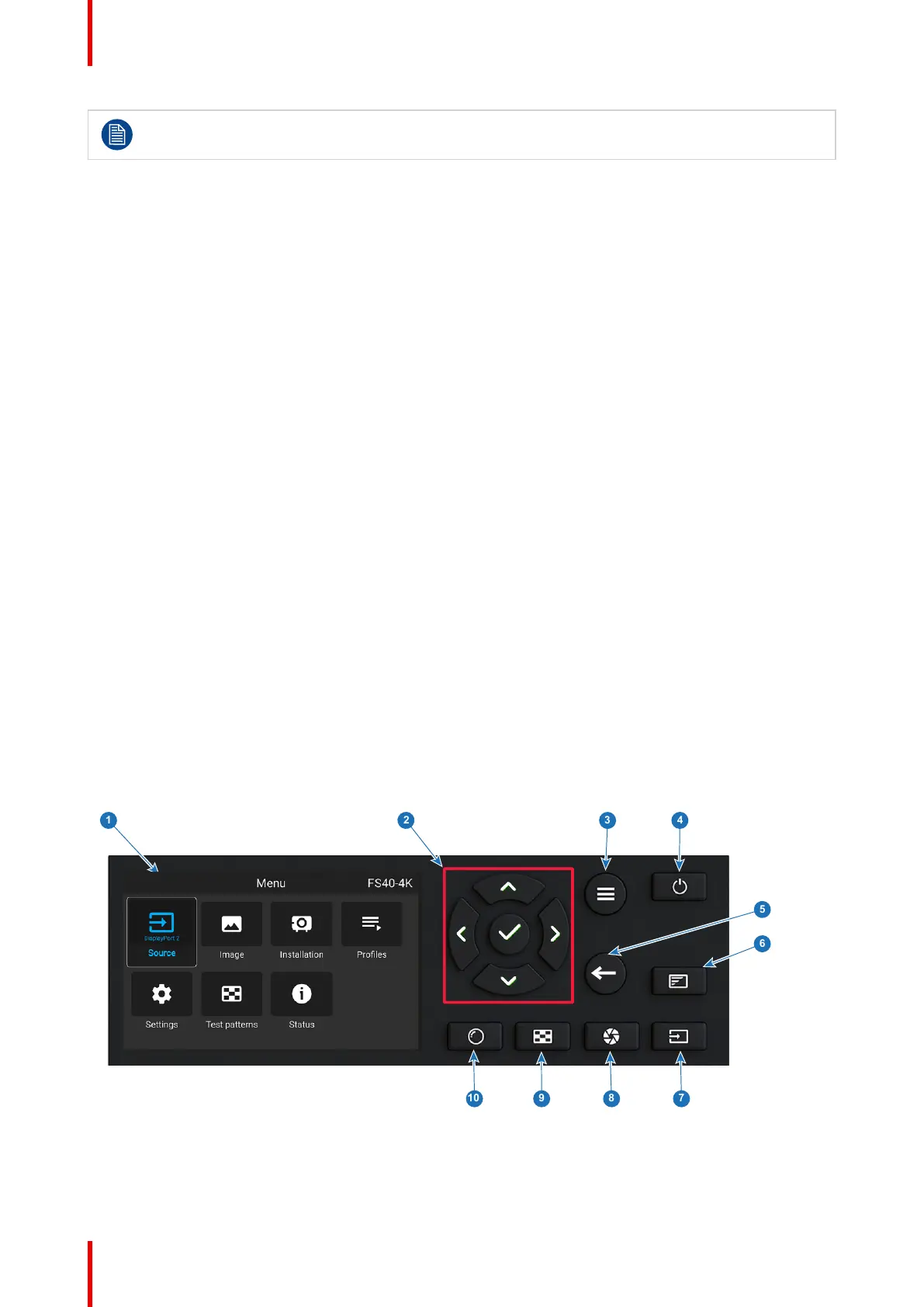 When the projector is in Ready mode, it is possible to activate and navigate in the projectors menu on the LCD