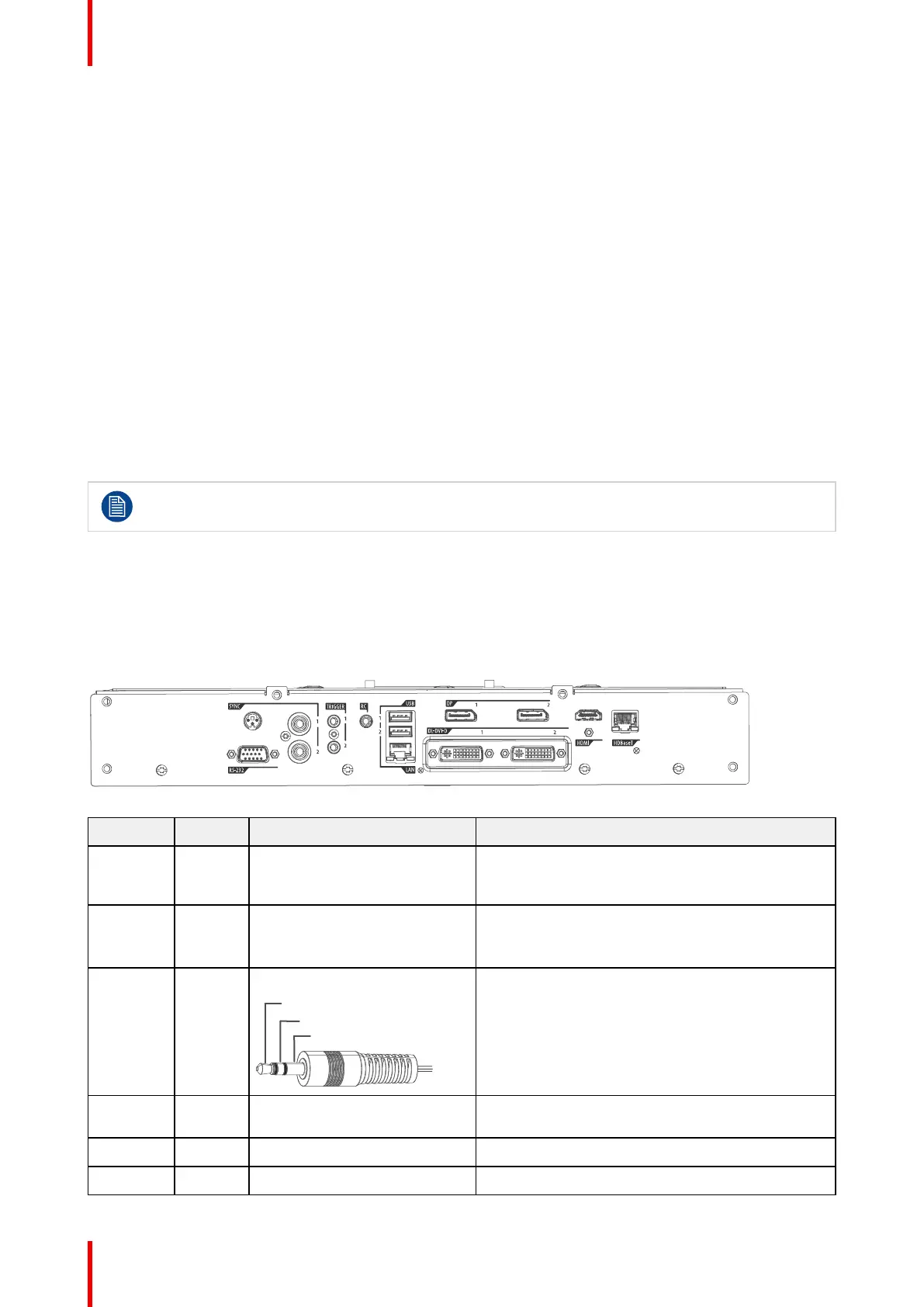 The source input panel is located at the back of the projector. For source specifications, see table below.