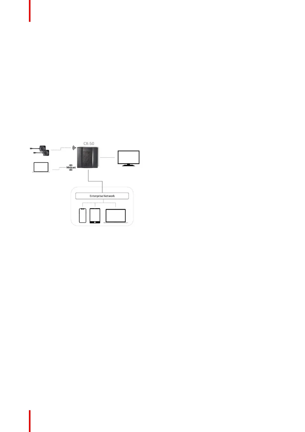 Desktop App, the ClickShare Mobile App, AirPlay, Google Cast via the network to which the Base Unit is