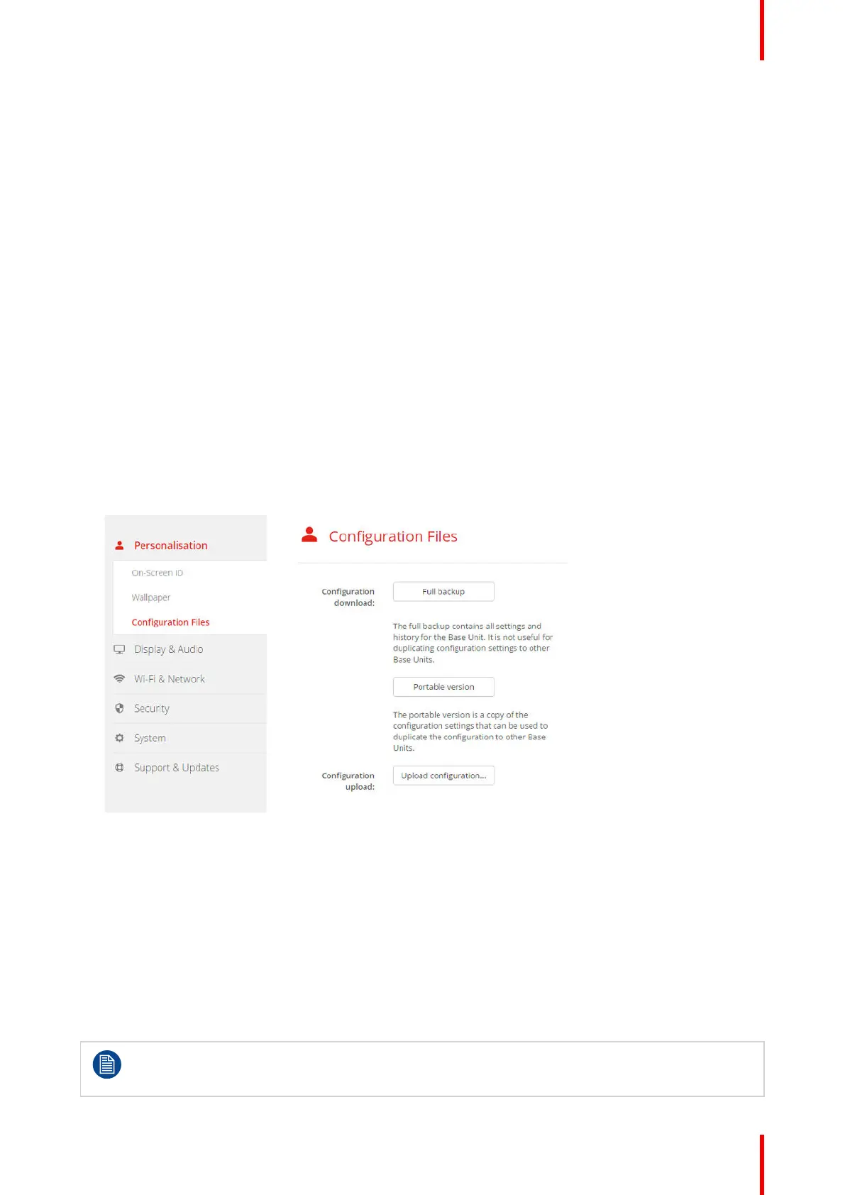 configuration button on other Base Units (same type). Via the same button, the full backup can be uploaded