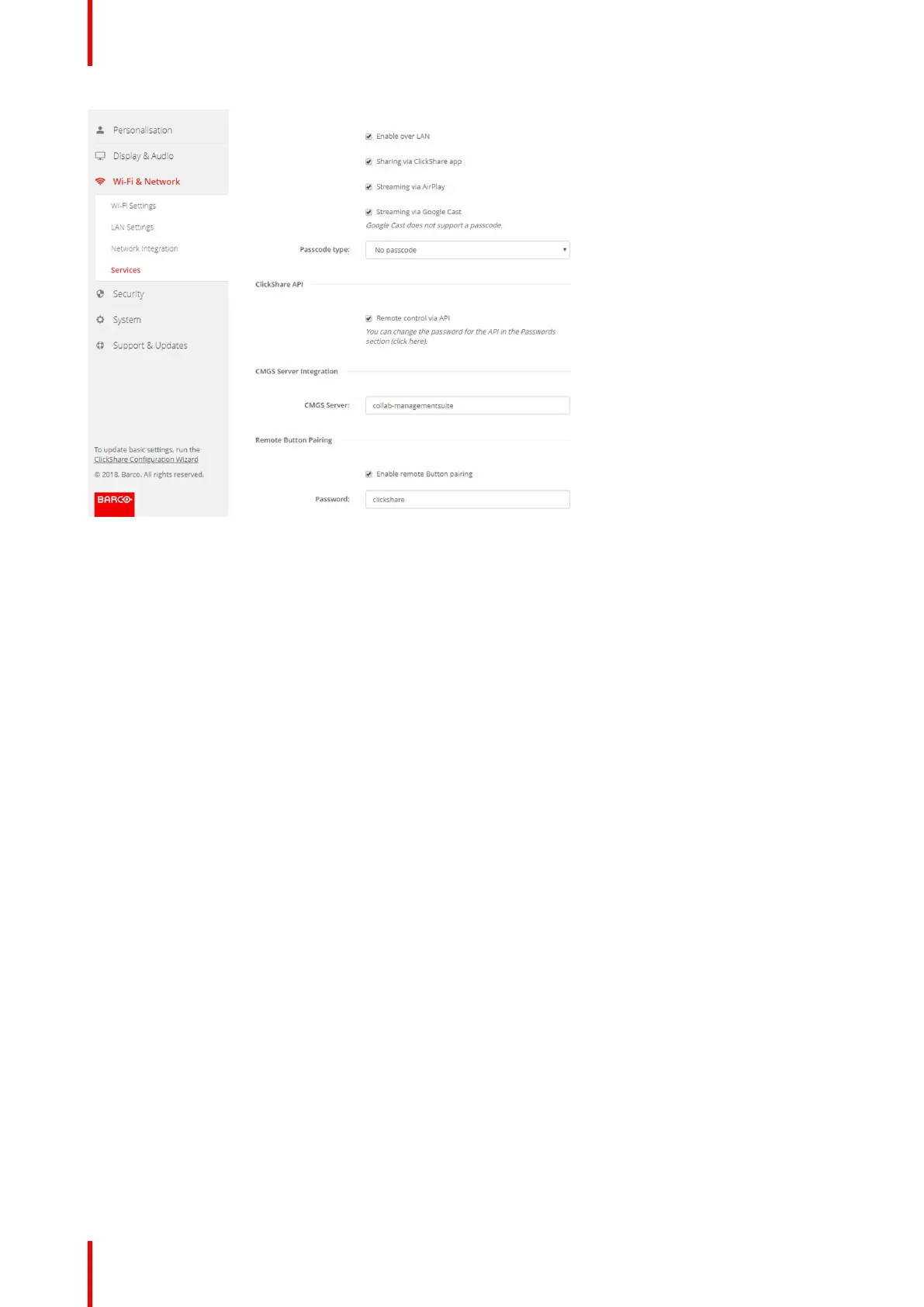 Checked: remote Button pairing is activated. A password should be entered to start the remote pairing from