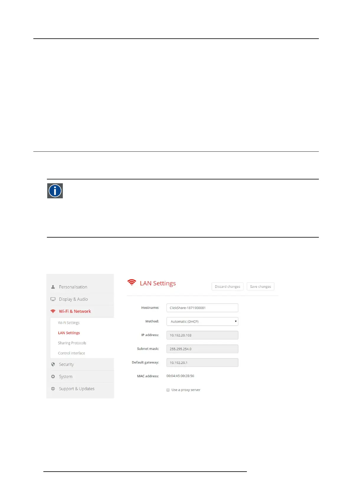 The default hos t name is ClickShare-<serial number Base Unit>.