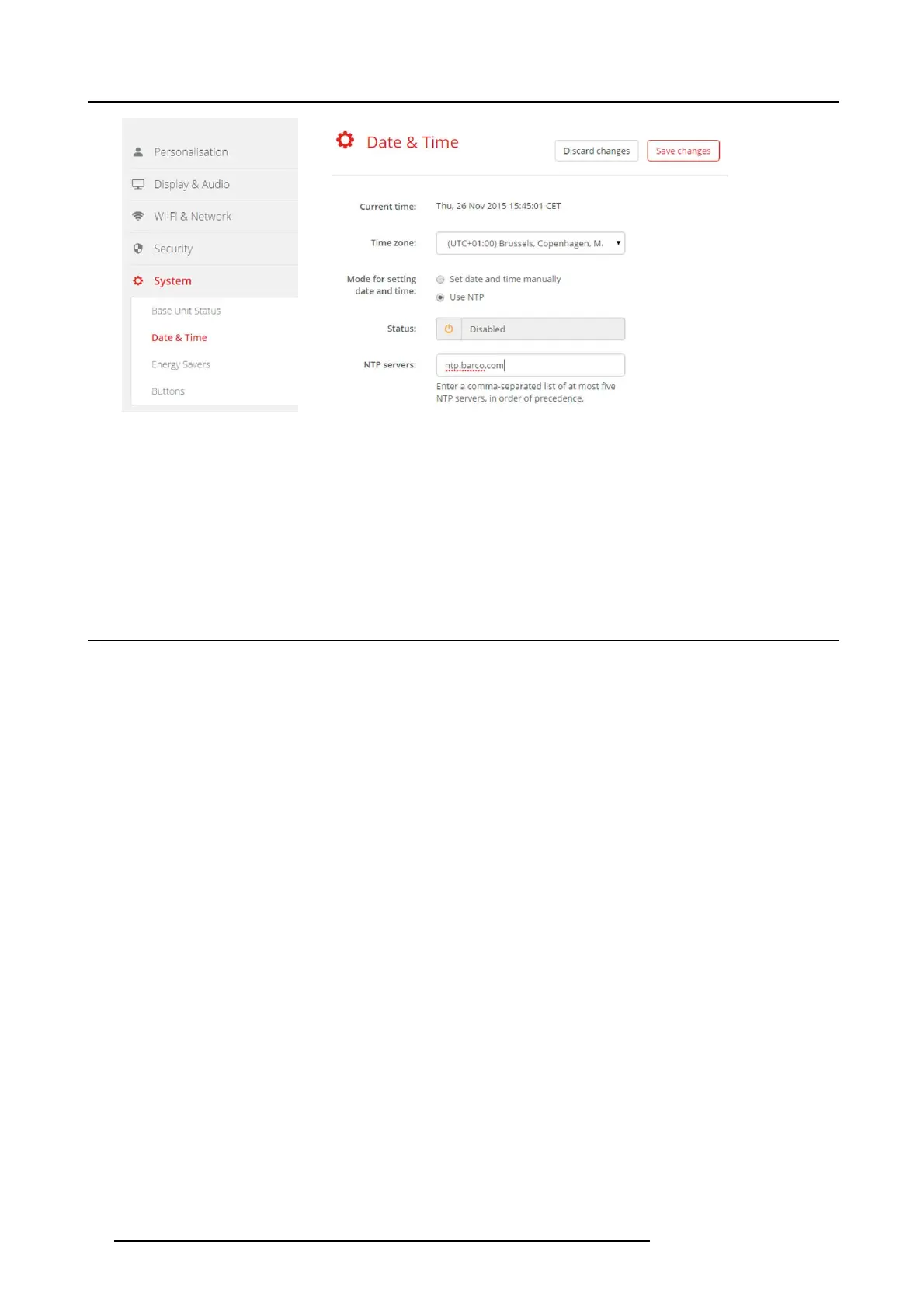 4. Enter a NTP server address next to NTP servers. E nter the IP address or server name.