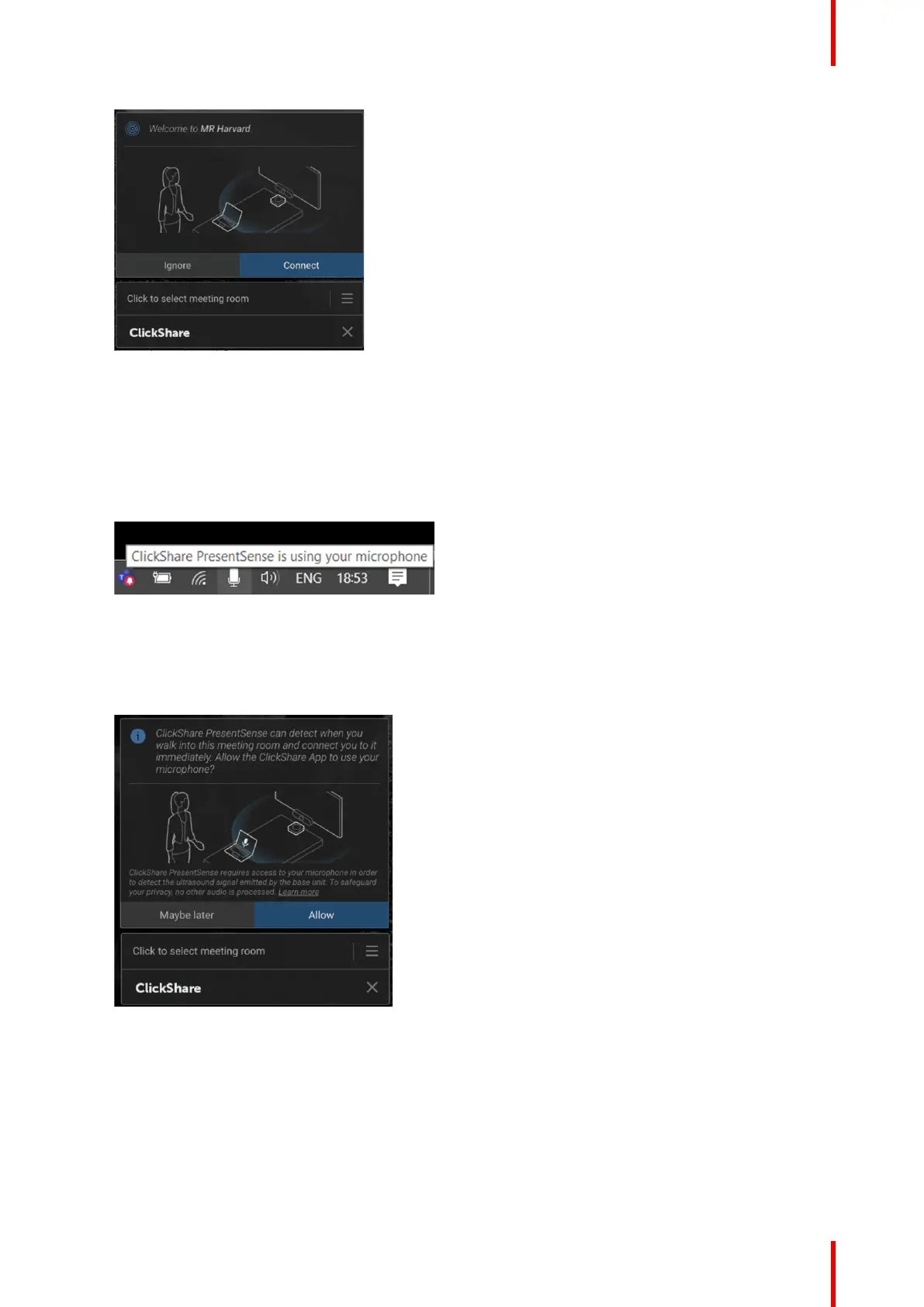 • Allow: allow to access your microphone and the ClickShare PresetSense function will be enabled when