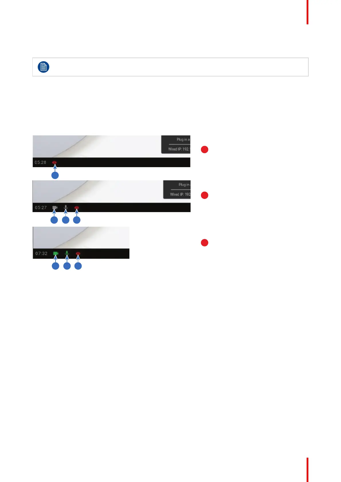 Icons on the wallpaper indicate the availability and status of the peripherals in the room. When one of them is