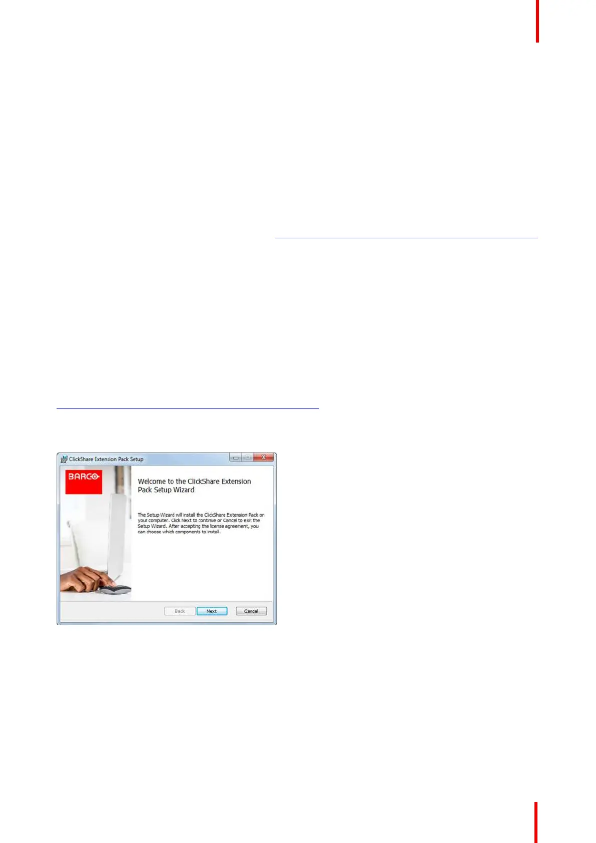 In this setup, the user runs the installer which will install the ClickShare Extension Pack on his computer after