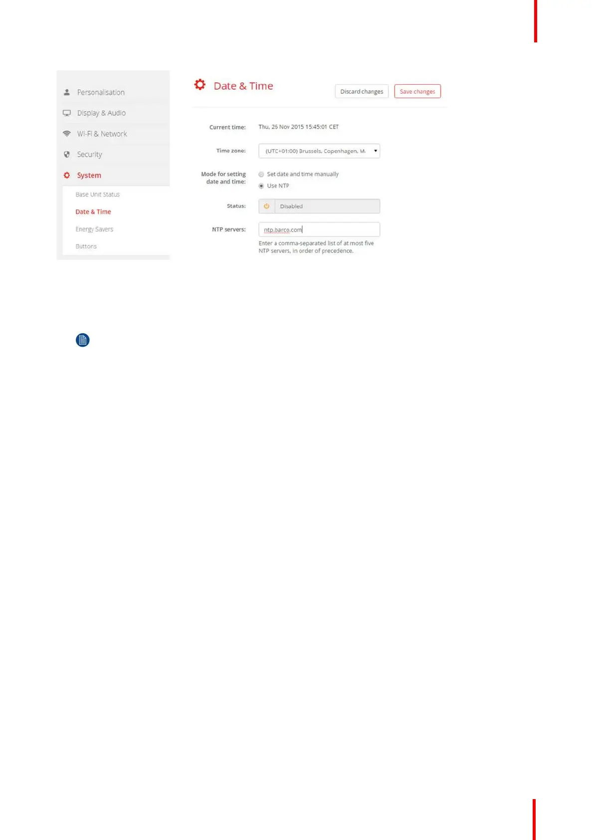 4. Enter a NTP server address next to NTP servers. Enter the IP address or server name.
