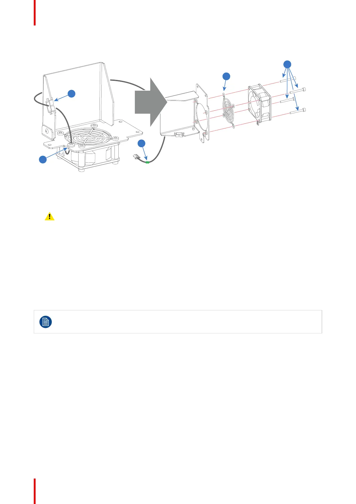 fan and mounting plate. Fixate fan and fan guard with four long screws (reference 5 Image 9-24) using a 3mm