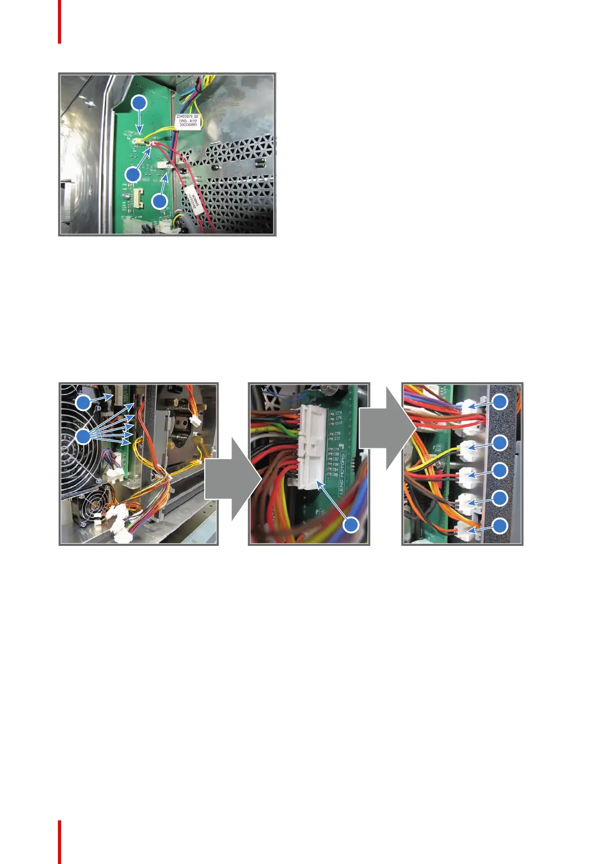 10. Engage the five wire sockets (reference 5, 6, 7, 8 and 9 Image 18-57) into the projector chassis as illustrated.