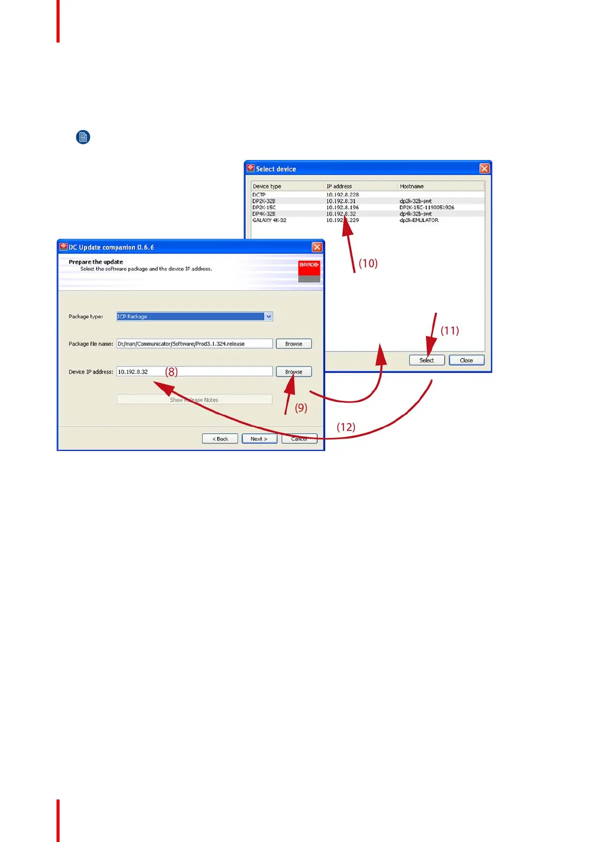5. Enter the device IP address (10) or click on Browse to open a device selection window (11).
