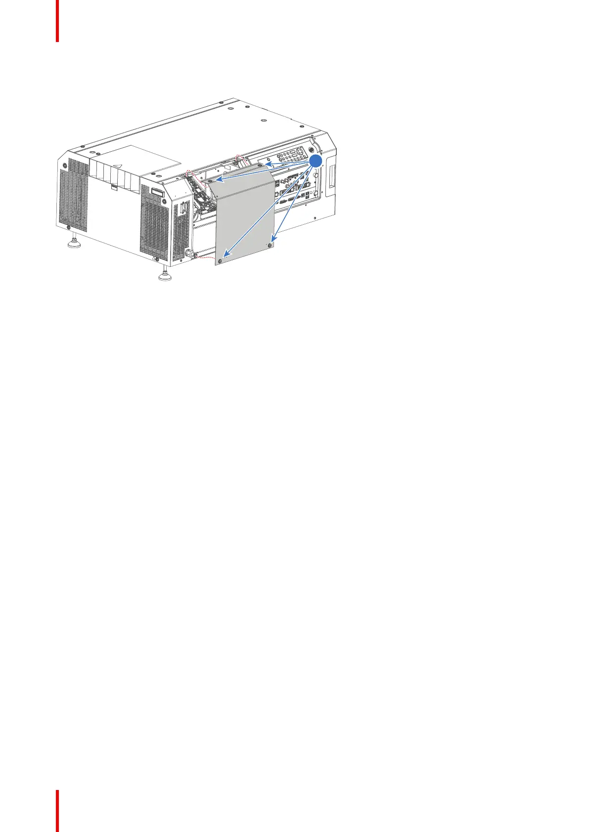 2. Fasten the four captive screws (reference 1 Image 22-16) of the Light Source cover using a 7 mm flat