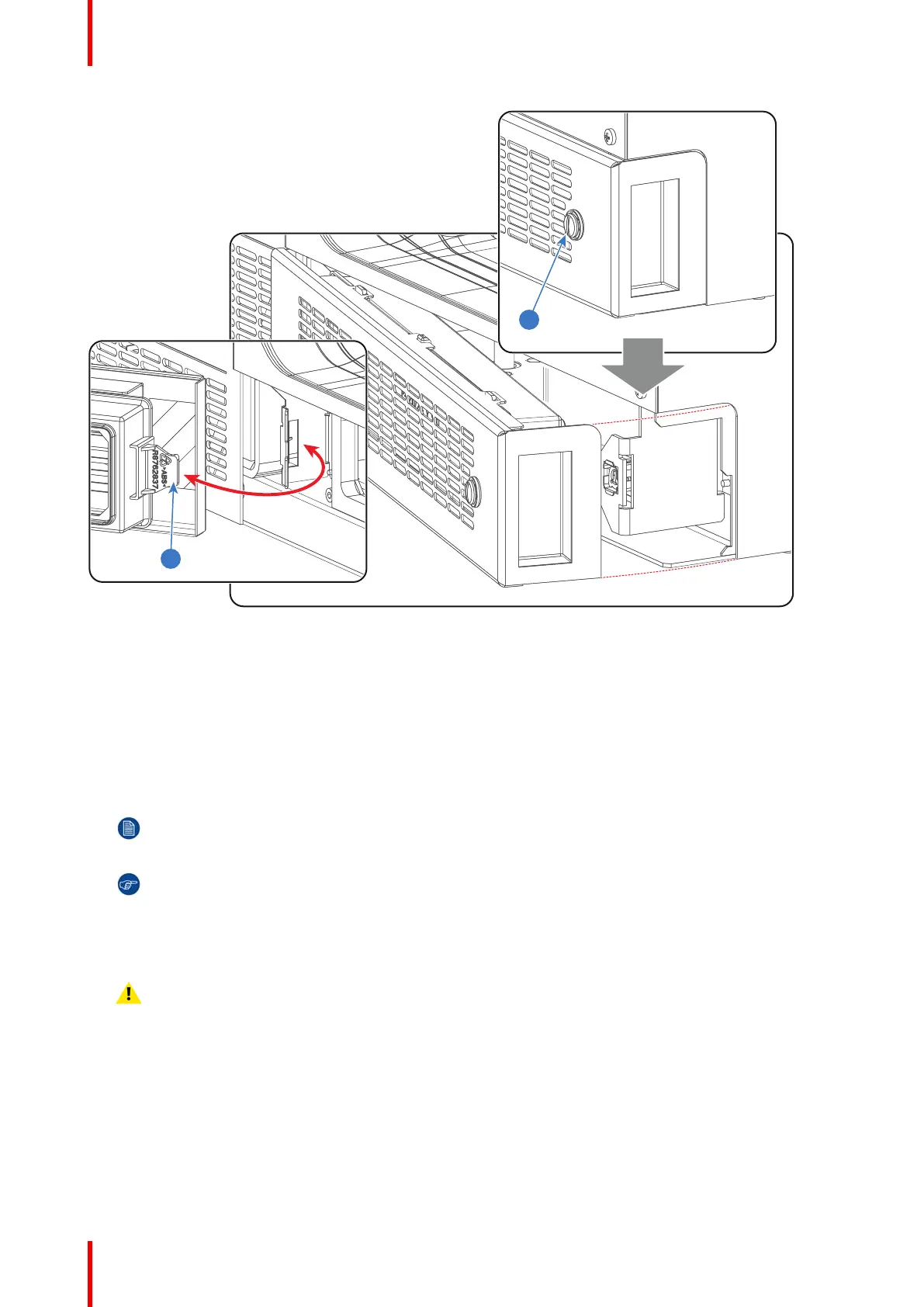 5. Attach a clean dust filter to the cover plate. Ensure that both latches (reference 4 Image 23-4) of the dust filter