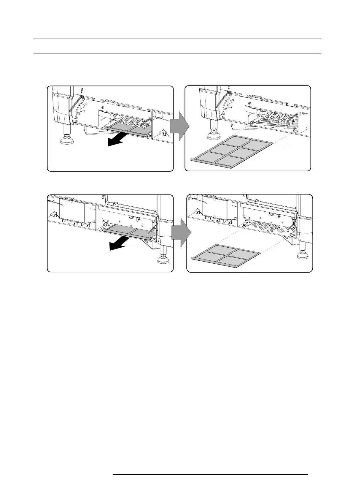 1. Insert the dust filter with the han dle upw ards. Sm all filter at the back, big filter at the front.