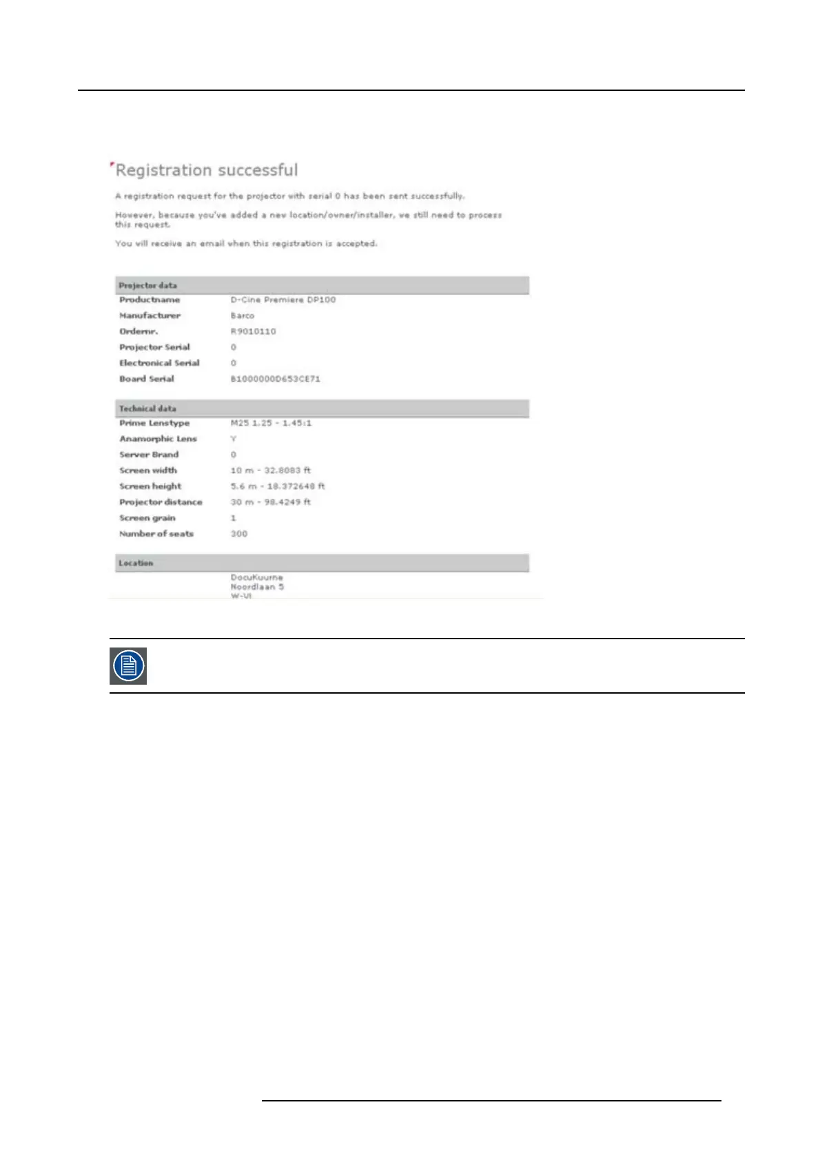 The registration is completed. An E-mail will be sent to the person who is logged in.