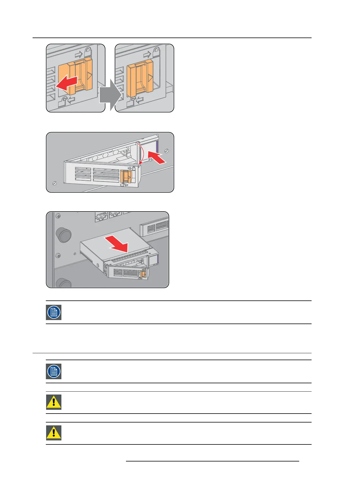 CAUTION: Always use a new empty spare part HDD approved by Barco to replace a m alfunction HDD. Do not