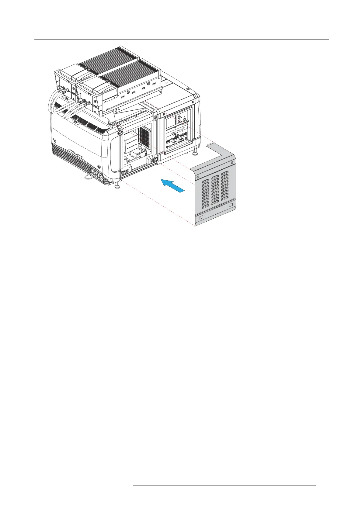 b) P ush both lock to each other and pus h at the same time the cover against the projector frame.