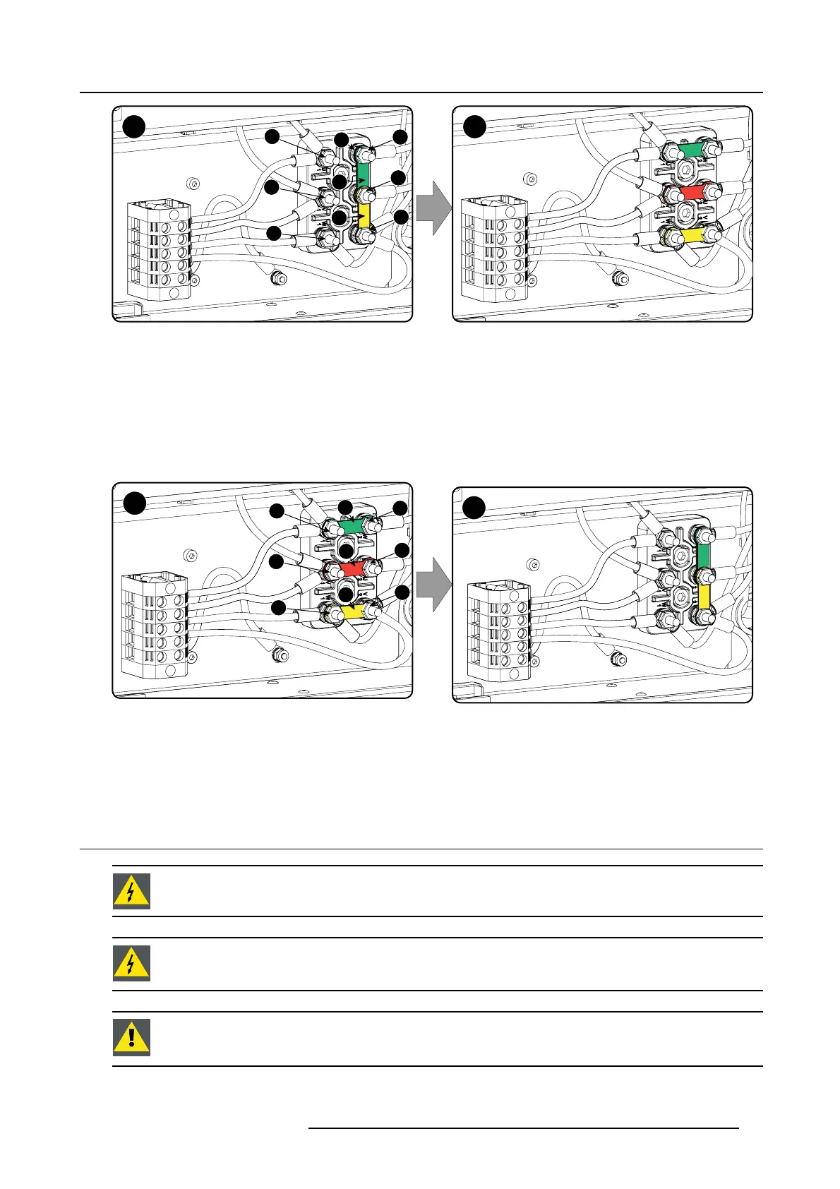 1. L oosen the top nuts on the Υ/Δ configuration bloc k (1 to 6).