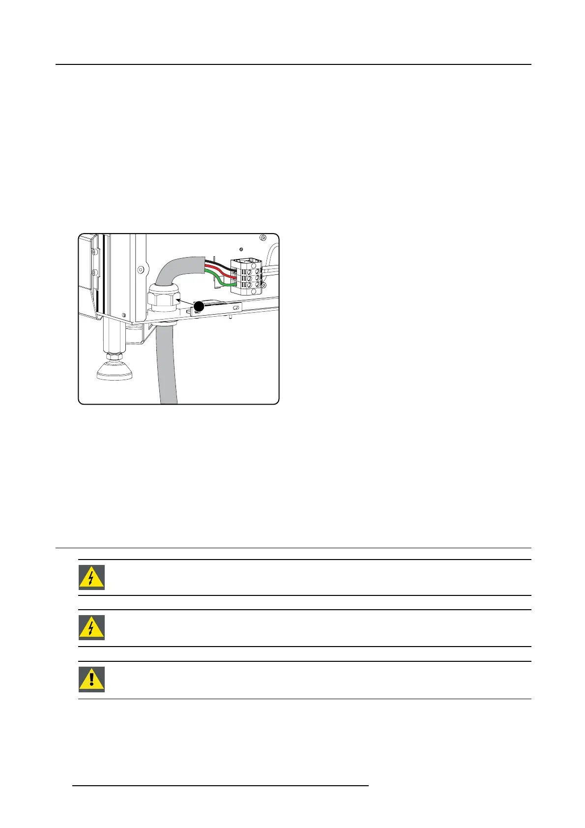 4. P ush the s tripped power supply cable through the cable gland. When us ing a flexible power cord, ma ke sure that each conductor
