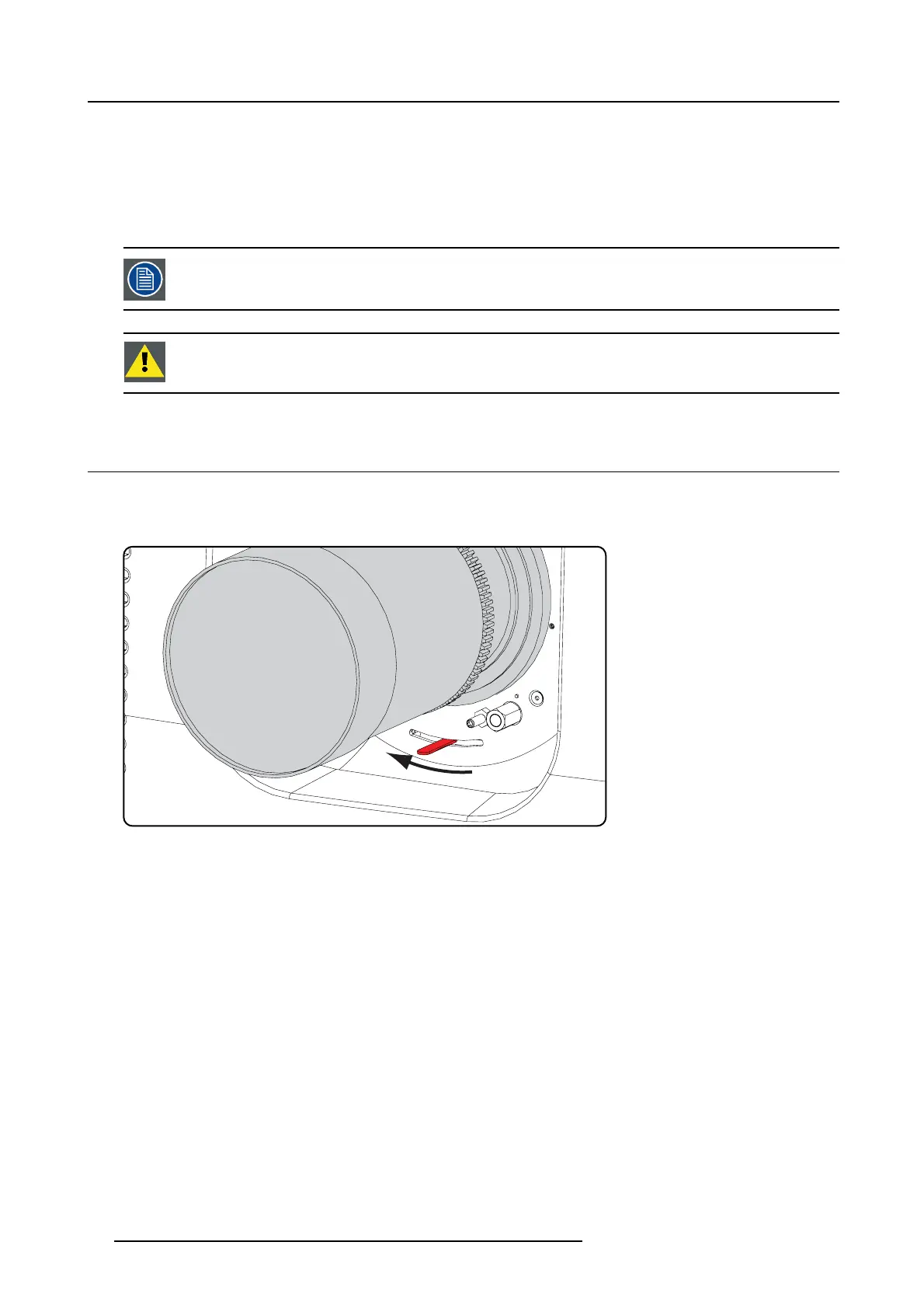 1. S upport the lens with one hand while you unloc k the lens holder by sliding the loc k handle tow ards the “unlocked” position as
