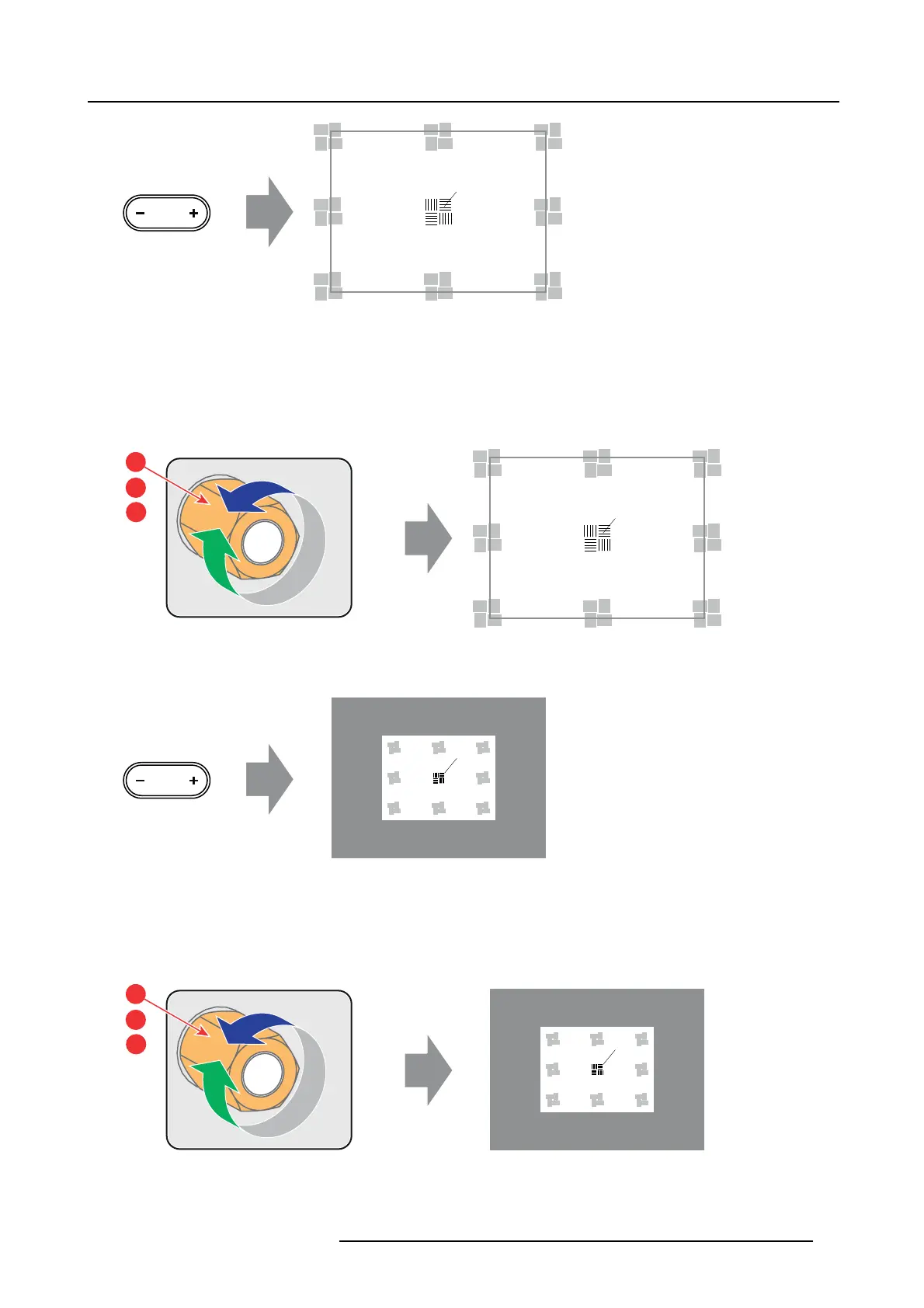 three S cheimpflug adjustment nuts, reference 1, 2 an d 3 image 7-2 6, equally in or out until the cen ter of the projected image is