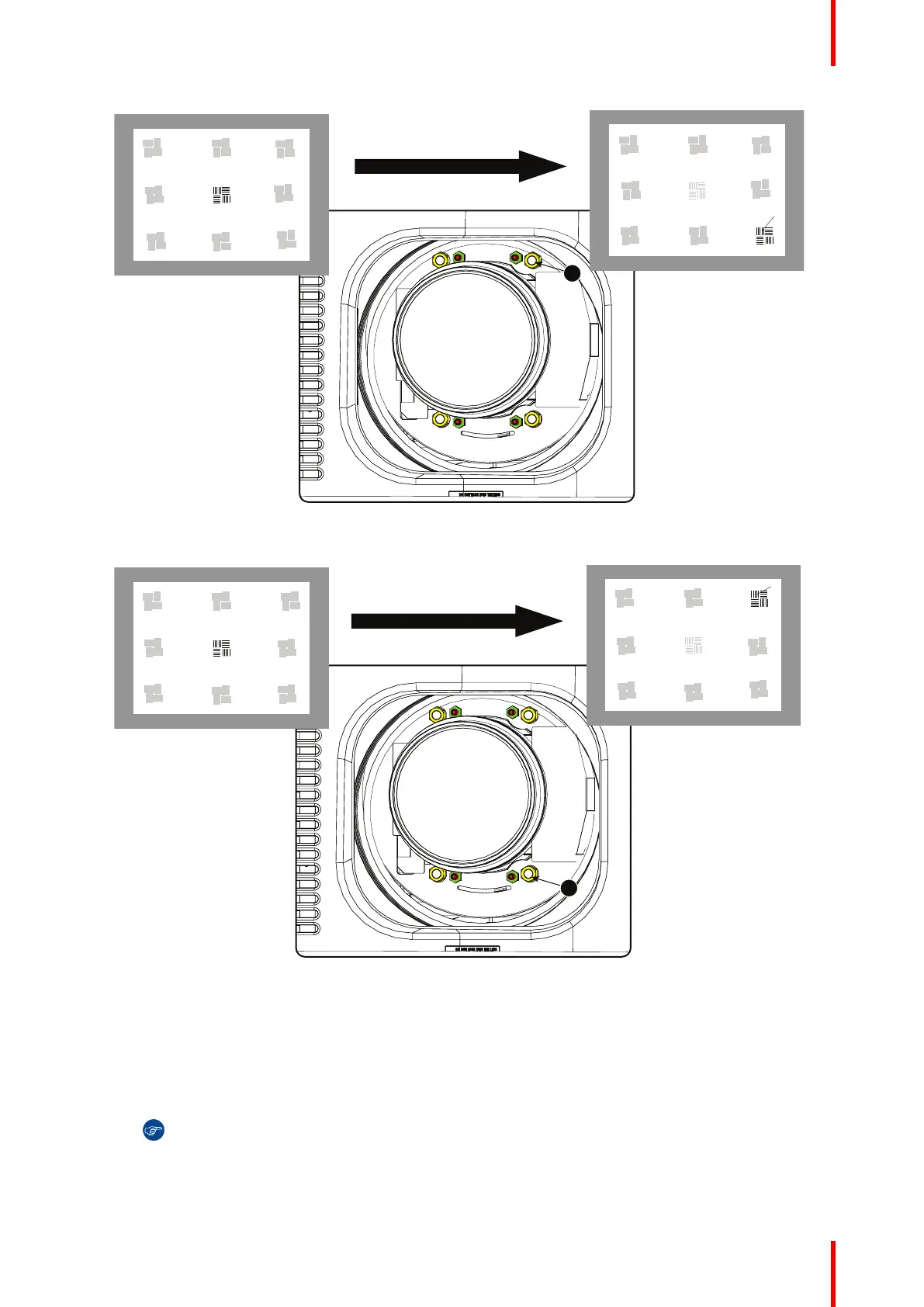 9. Repeat from go to step 6 until the projected focus pattern is as sharp as possible in the center, left, right,