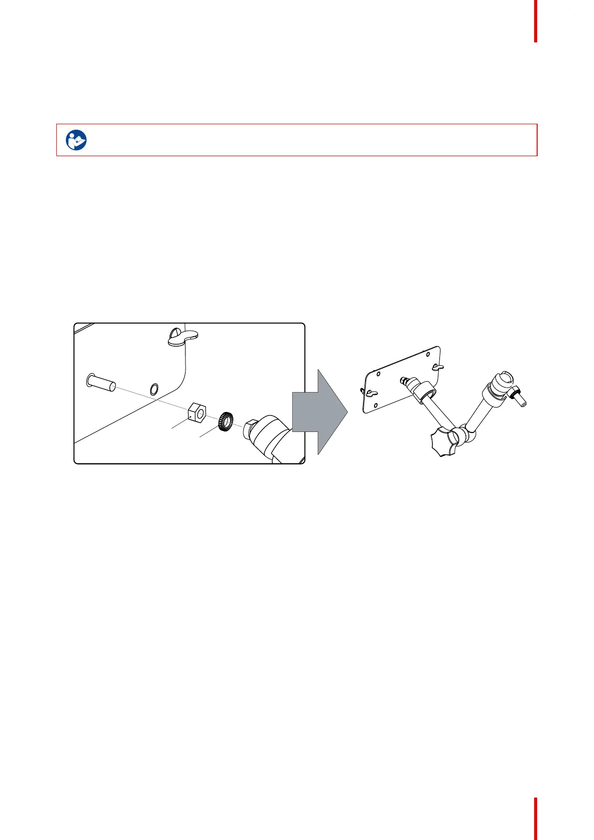 rod of the mounting plate, then add the lock washer (L), then fasten the mounting plate and the swivel arm