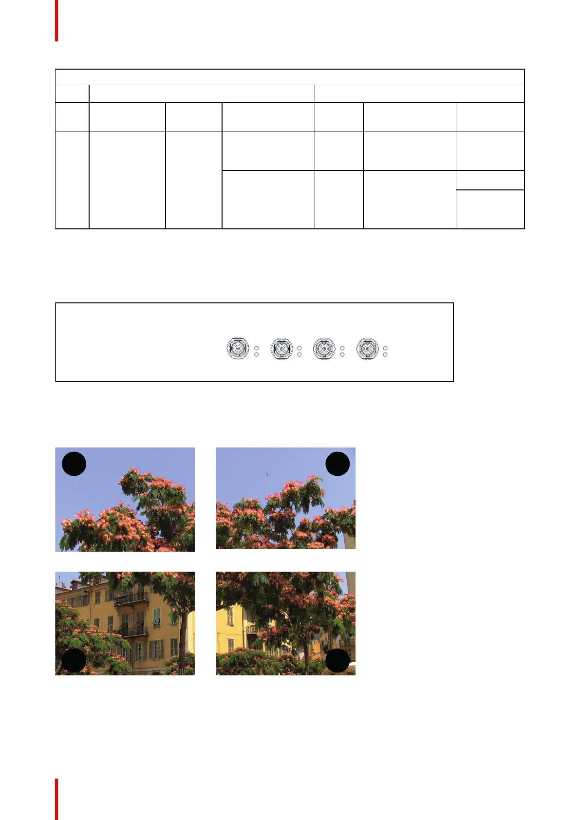 When using all 4 four inputs to create the image connect the quadrants of the image to the inputs as indicated