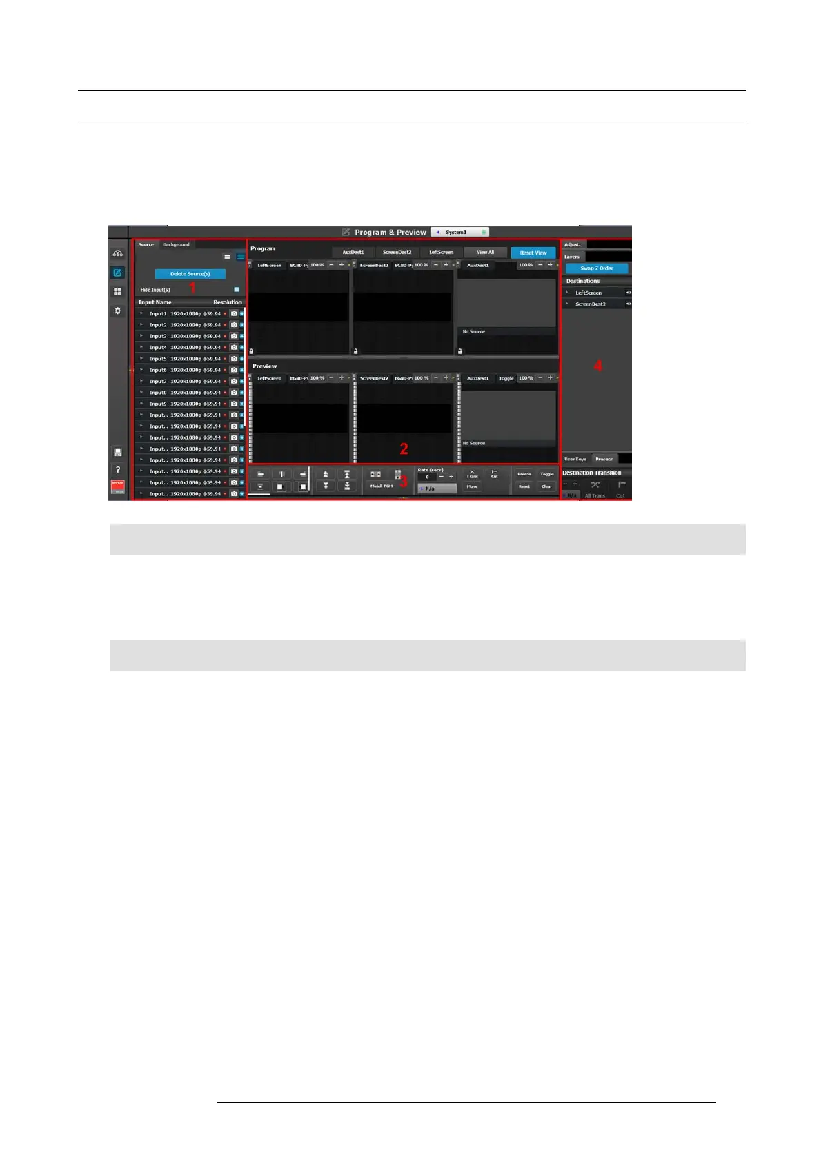 In the programming page is where the event is set up and everything comes together. Users can d e fine sources from inputs; assign