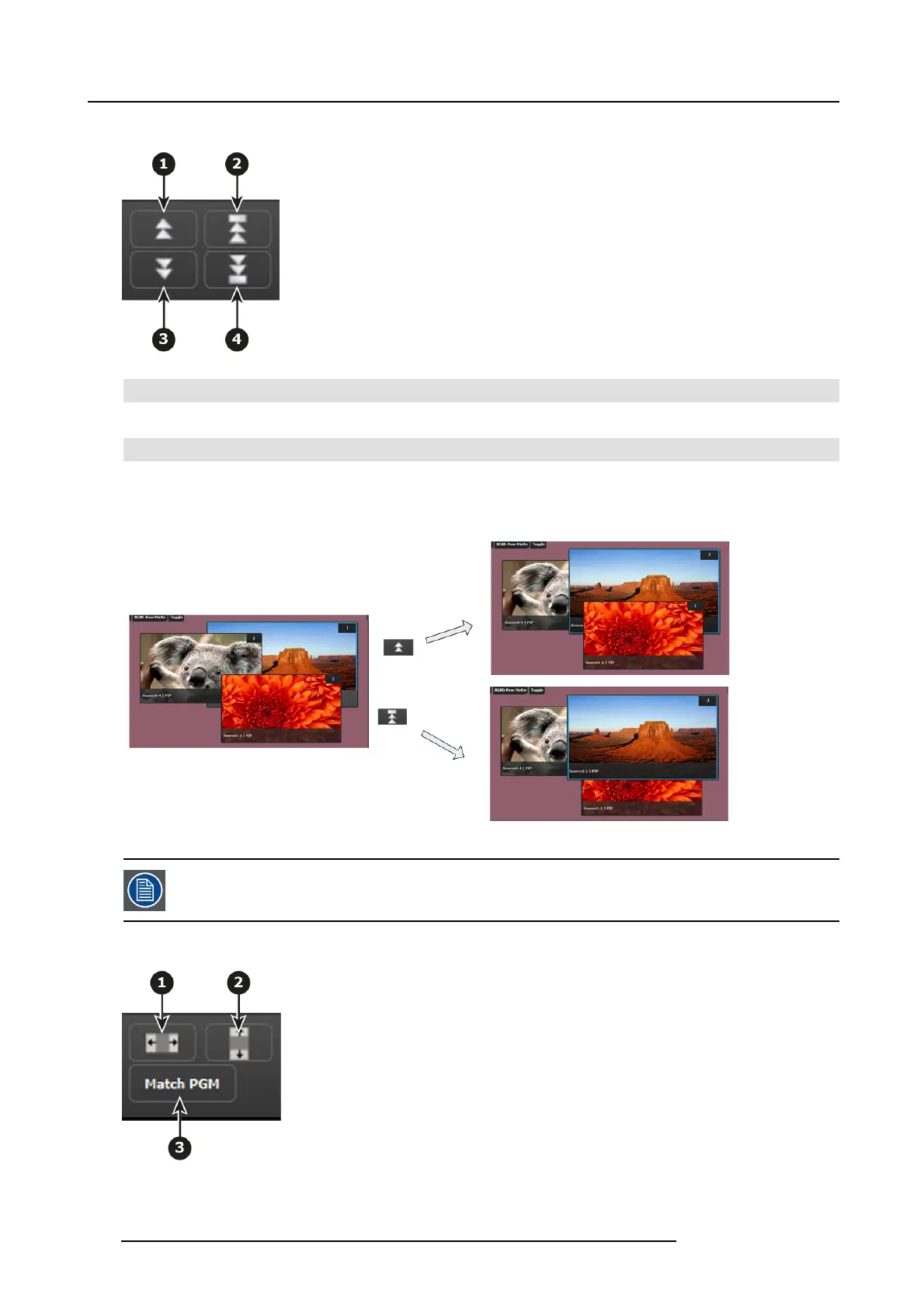 3 Moves down in priority and swaps the z-order of the selected layer with the layer previously below.