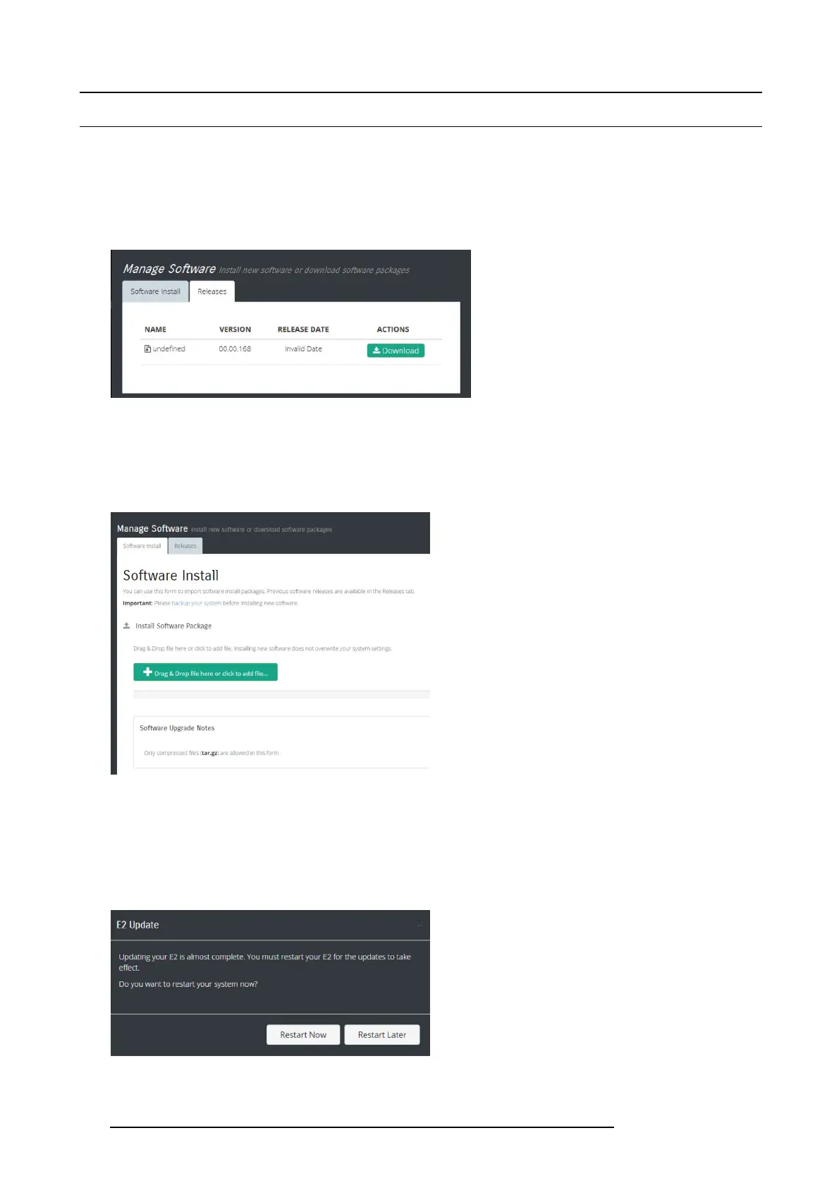 When you select the “Manage S oftware”, two tabs are presented. The “Software Install” tab and the “Releases” tab.