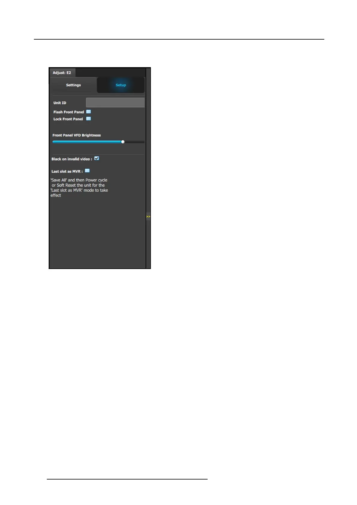• Front Panel VFD Brightness: Updates the brightness of