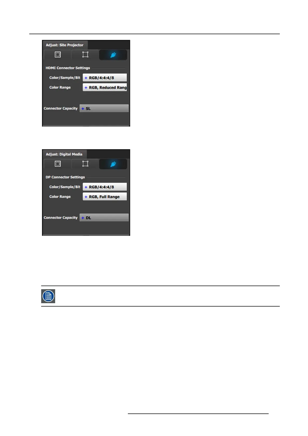 • Color/Sample/Bit: Adjusts the co lor space (RGB or YCbCr),