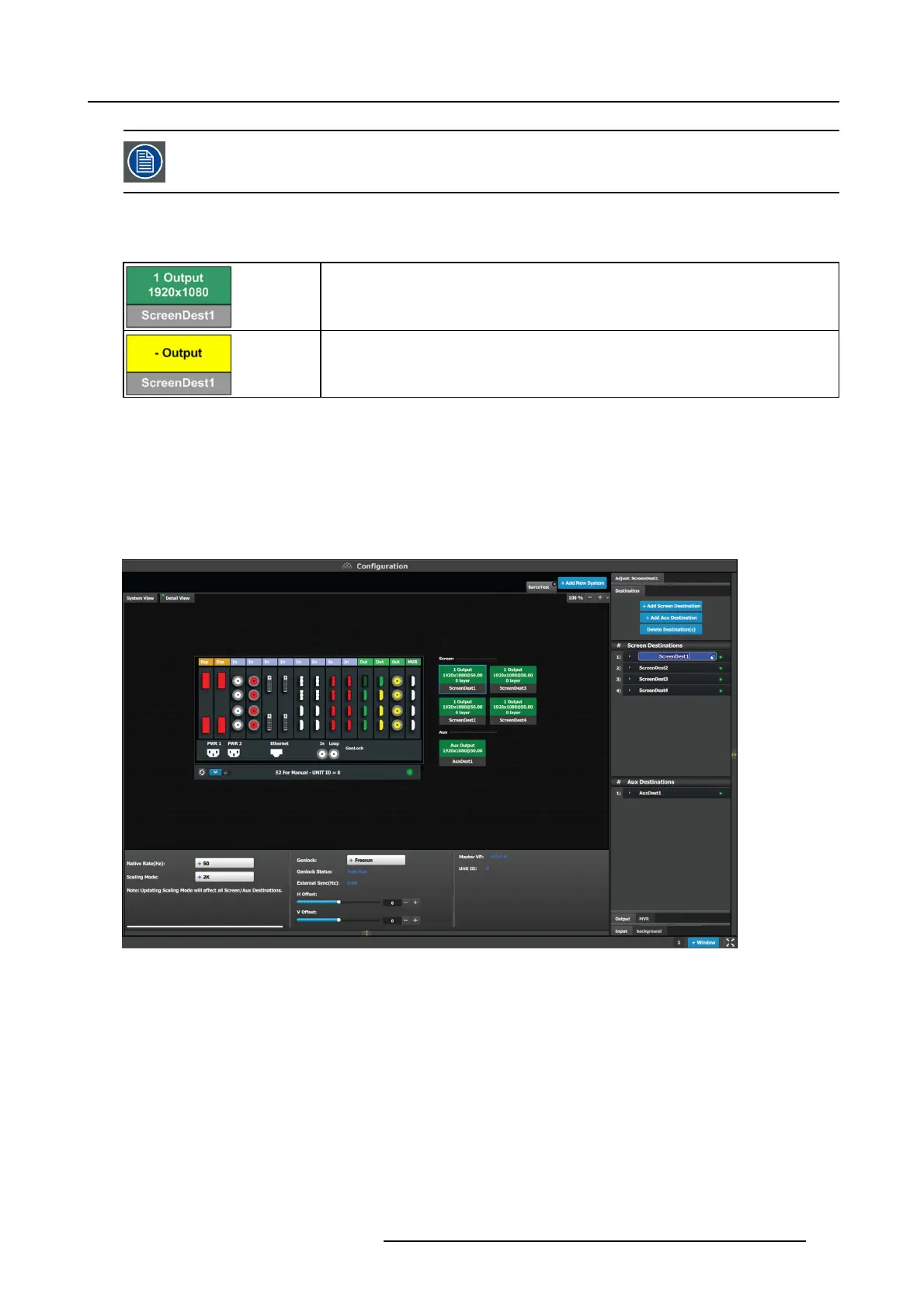 below, the output 1 was ass igned to ScreenDest1 and the destination format was set to 1920x1 080 reflecting the format of output1.