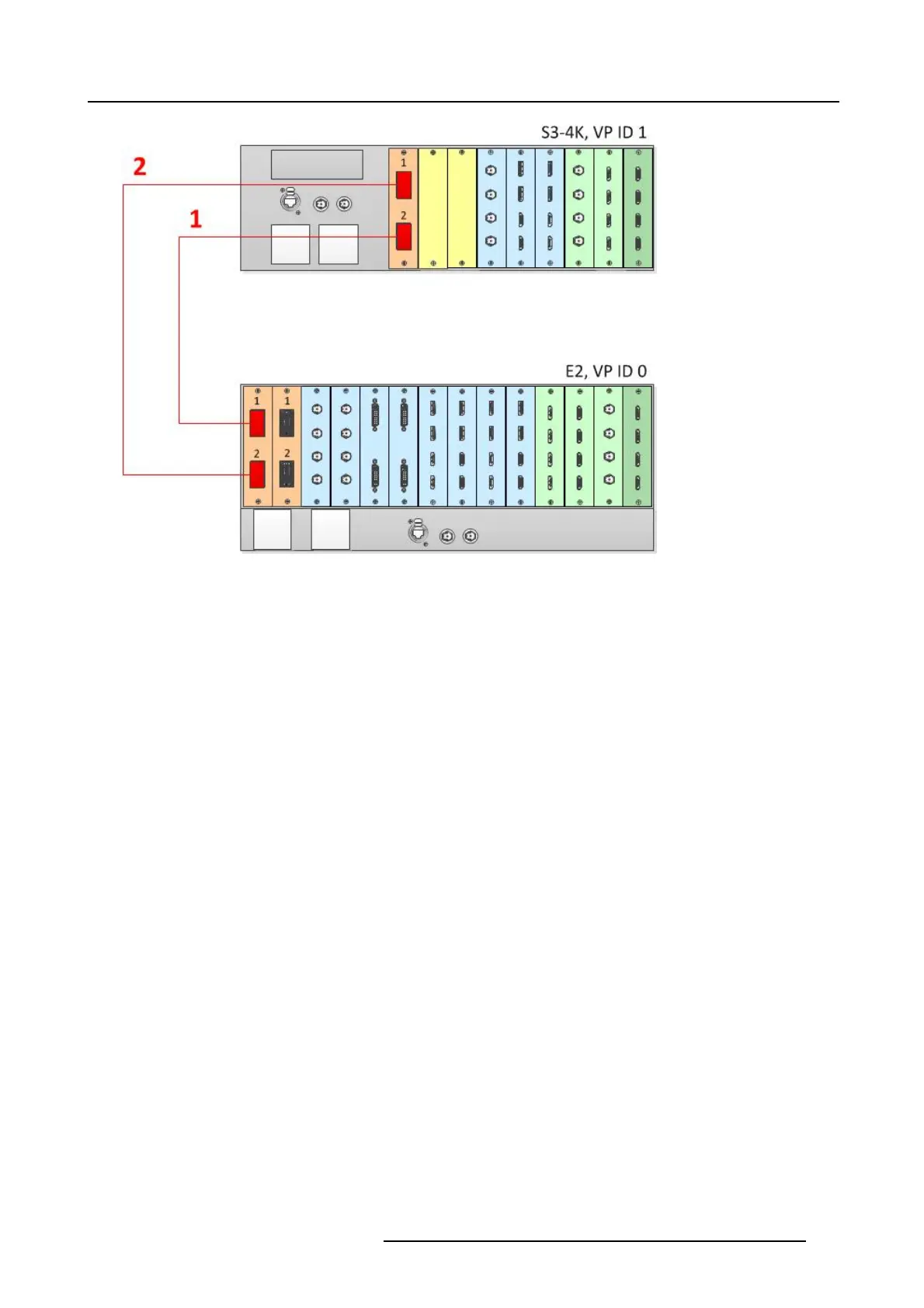 • E2 VP ID 0, Link Card slot 1, Link 1 >> EX VP ID 1, Link 2