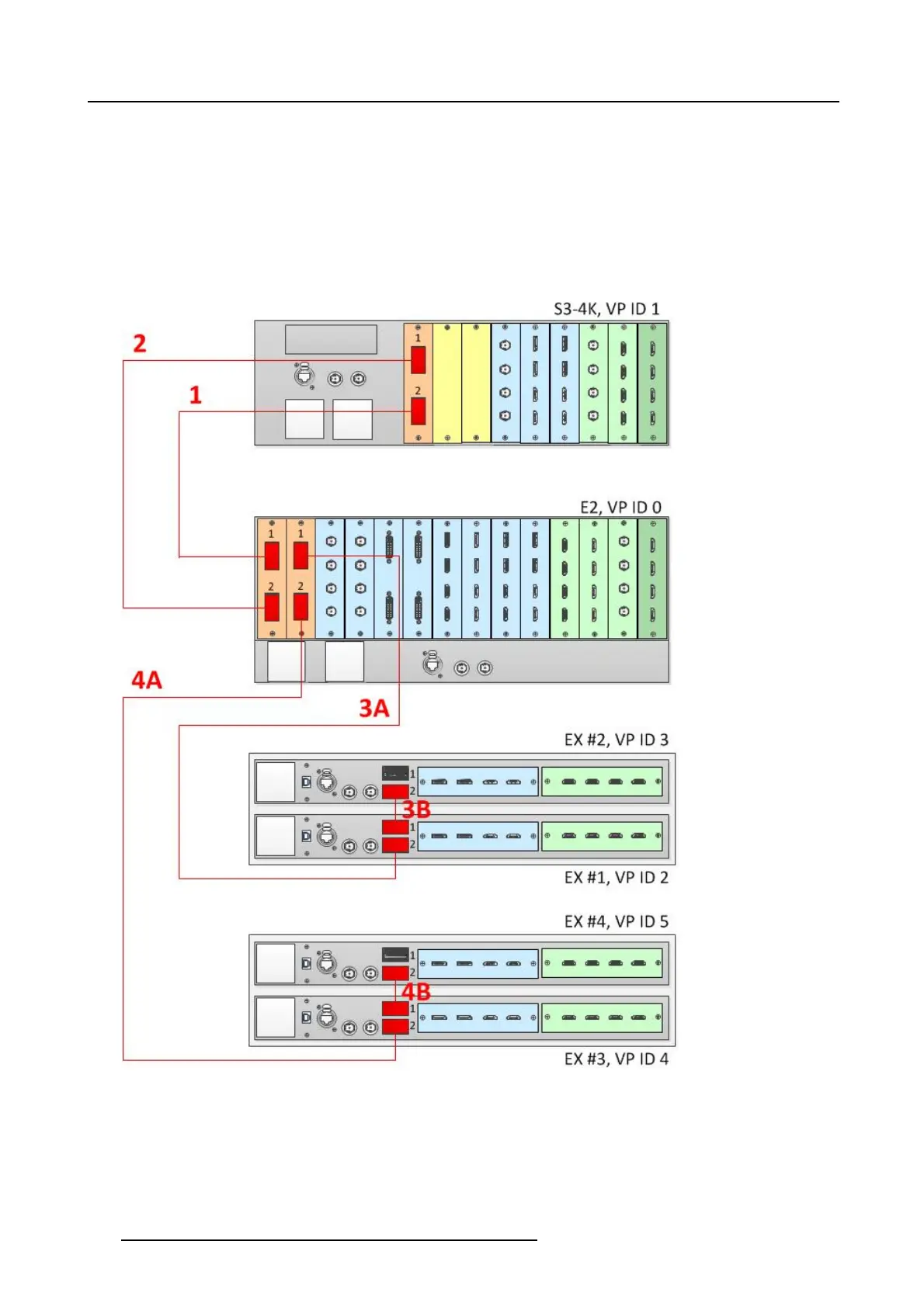 See image 6-33 for an example of the cab ling between a n E2 unit, an S3-4K unit, and four EX units.
