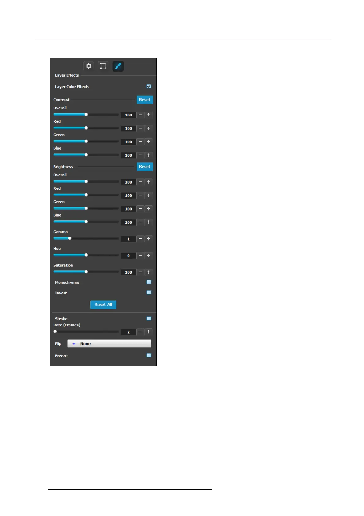 • Reset All: Returns all va lues to their default settings.