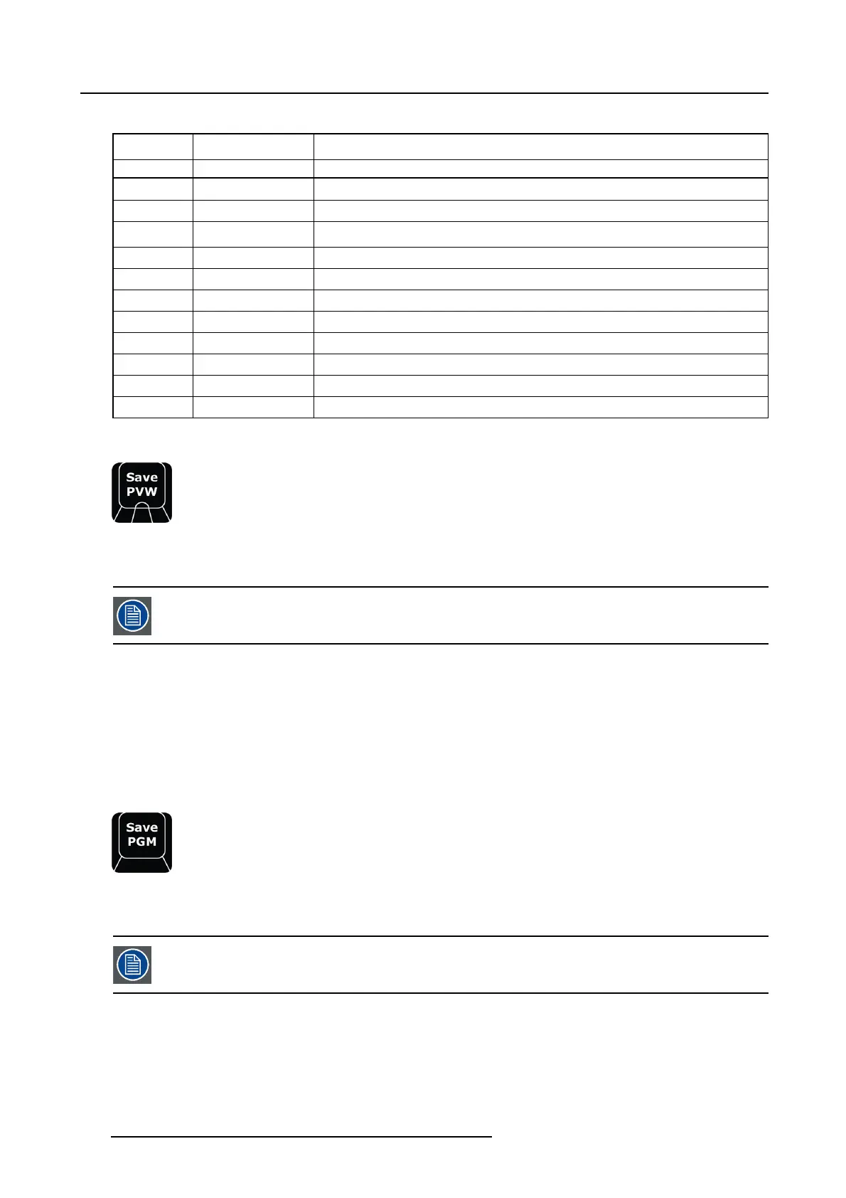 If either Save PGM or Save PVW is latched and the other is pressed it cancels the previous latch.