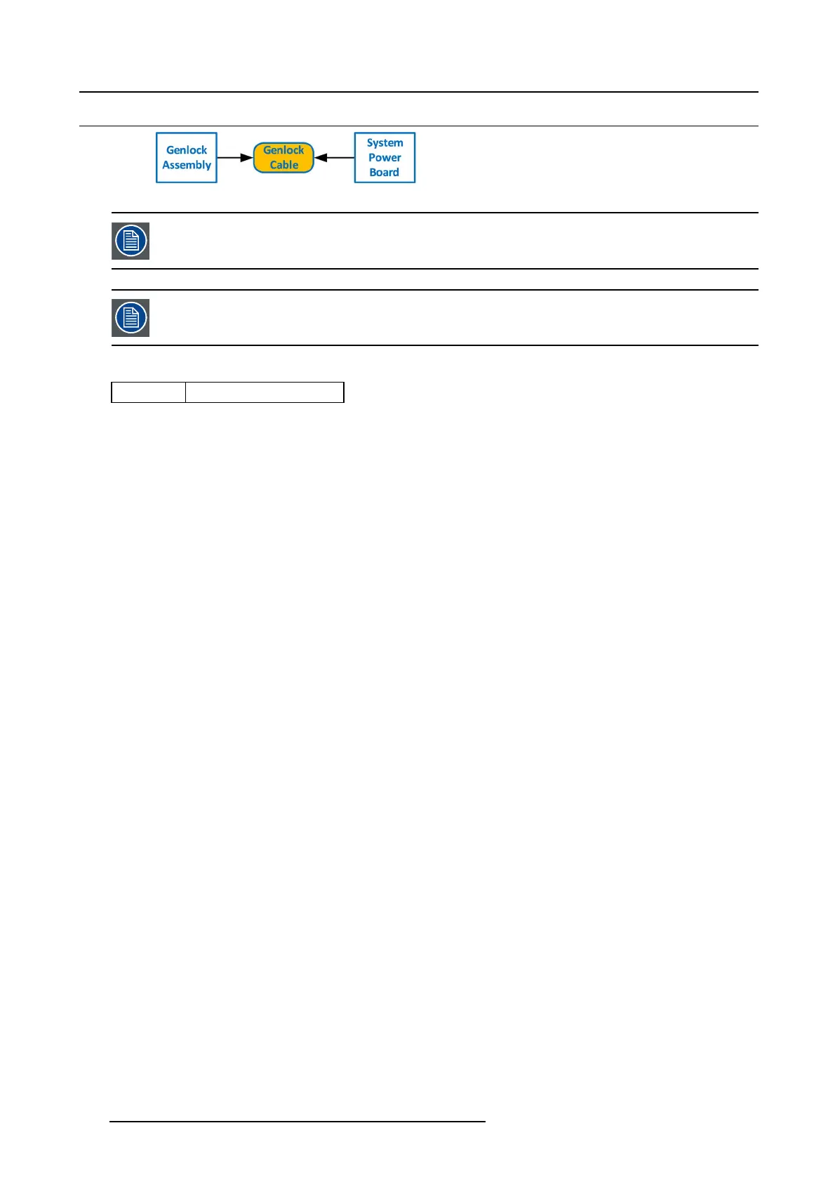 The flat ribbon Genlock cable connects the Genlock Assembly to the System-Power board. This procedure