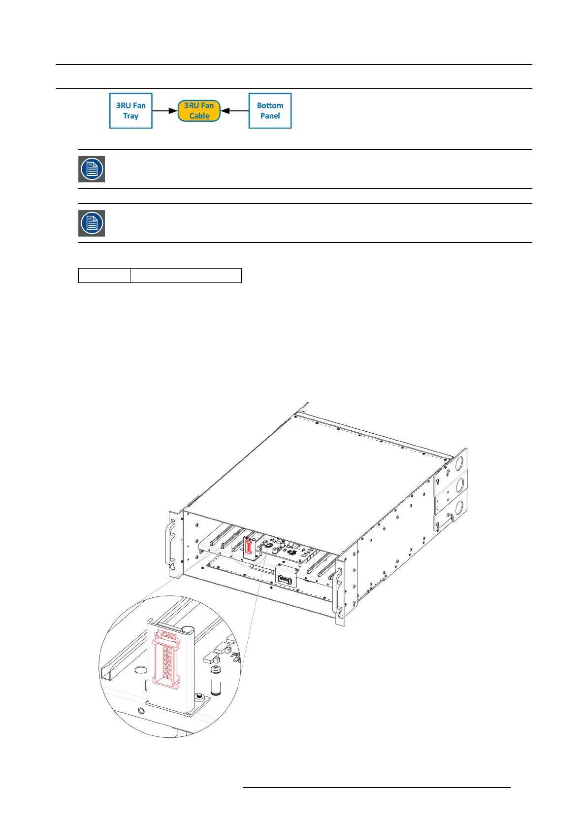 One side of the cable is attached to a metal bracket t hat is accessib le after the 3RU fan tray is removed. The