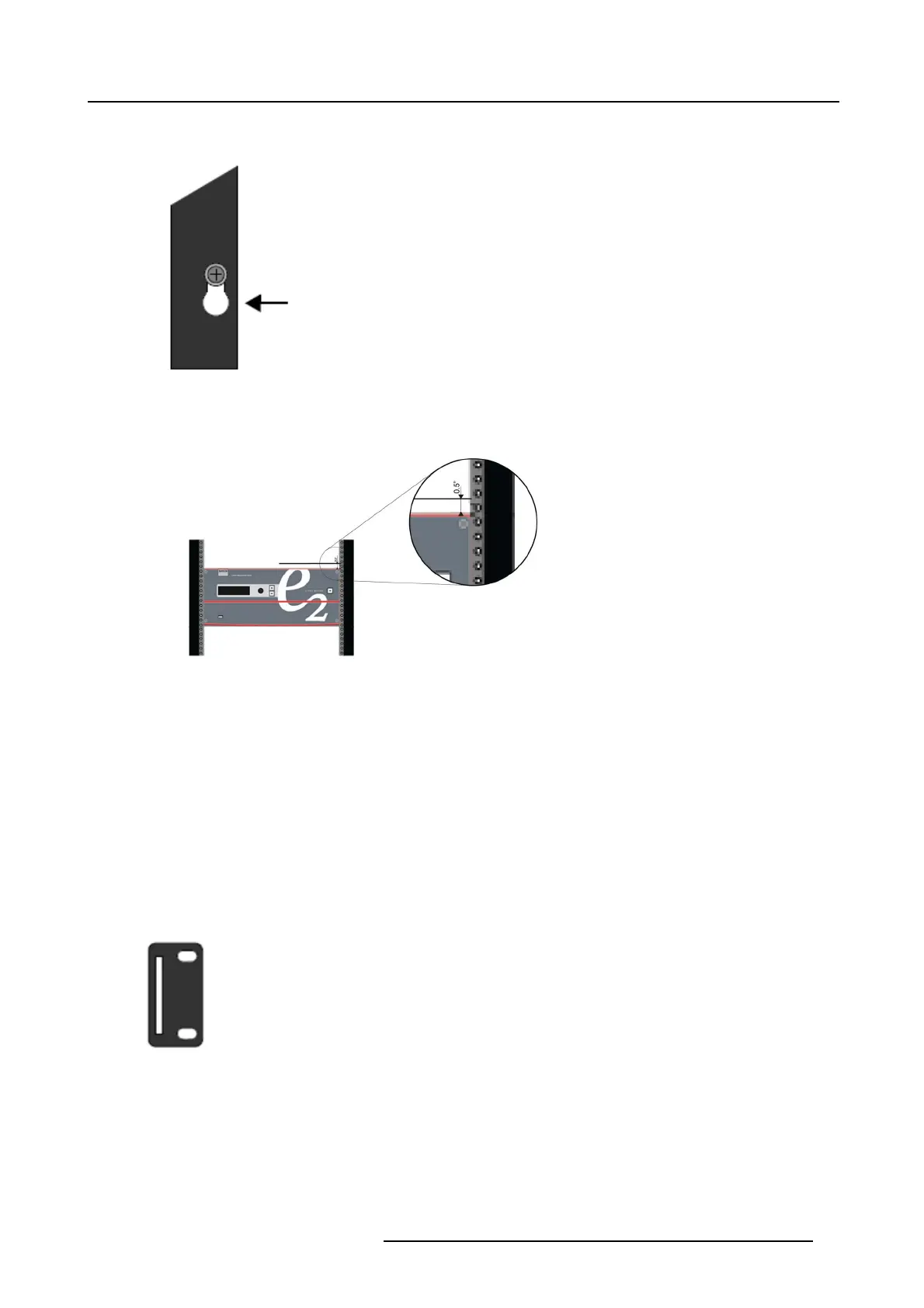 2. For the E2’s two keyhole slots, measure and install two rack screws in y our equipment rack’s front ra ils. Allow each screw to
