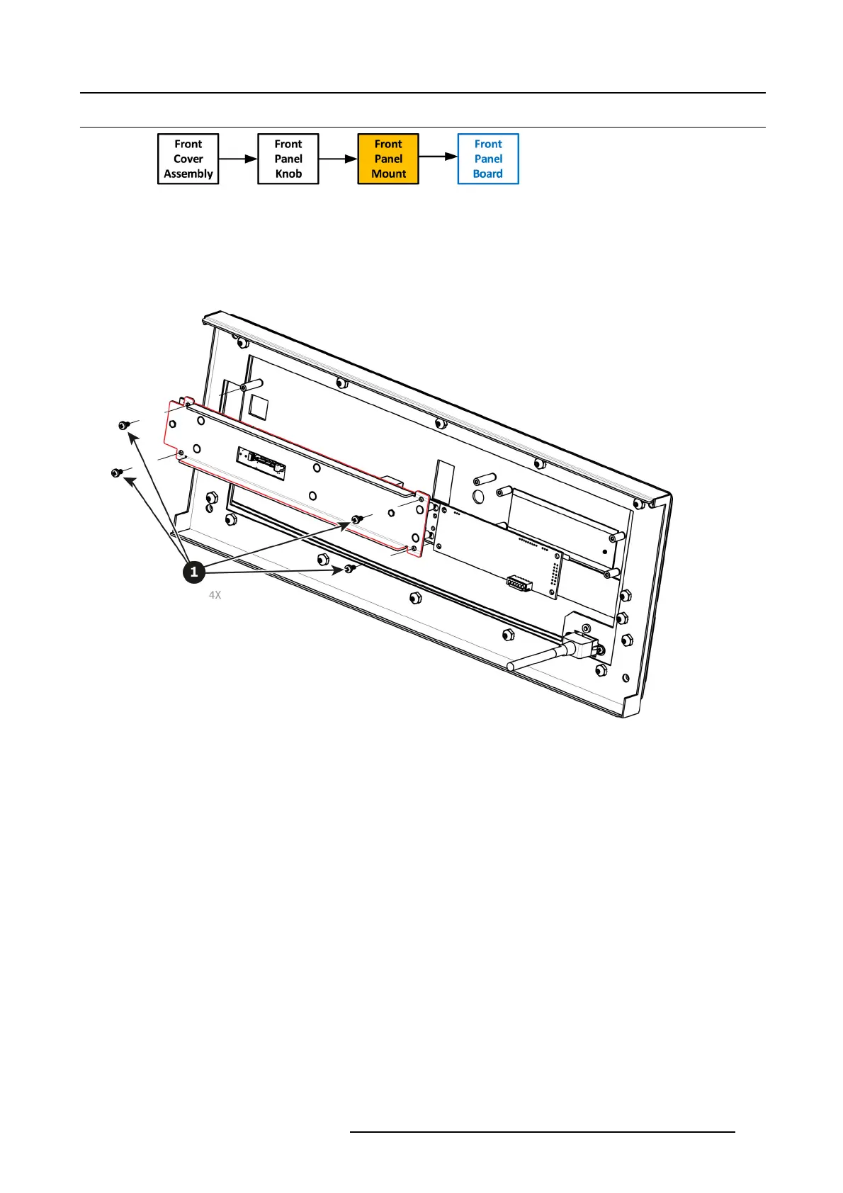 1. Turn the Front Cover over and remove the four screws (4-40X.25) that secure the co ntrol panel mount to t he front panel.