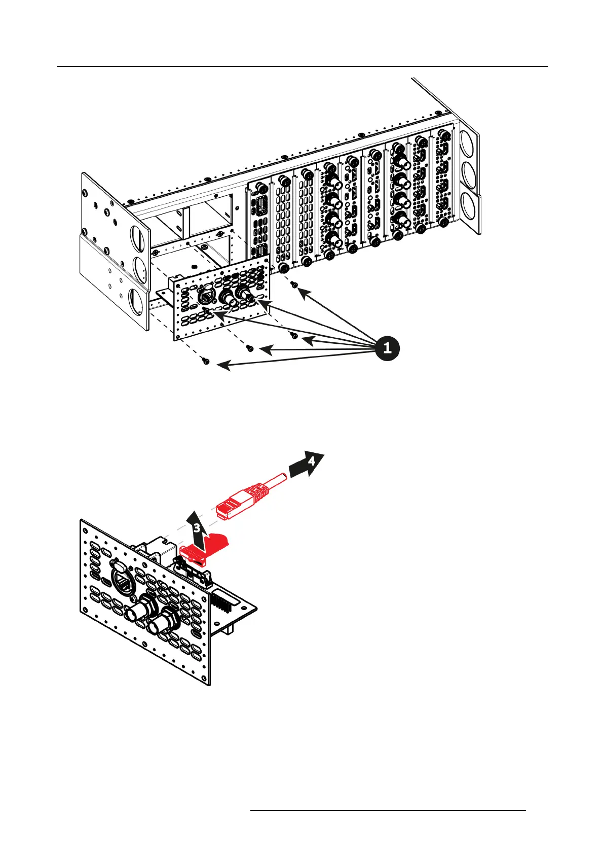 4. Unlatch the Ethernet cable from the connector and pull back and away from the G enlock board.