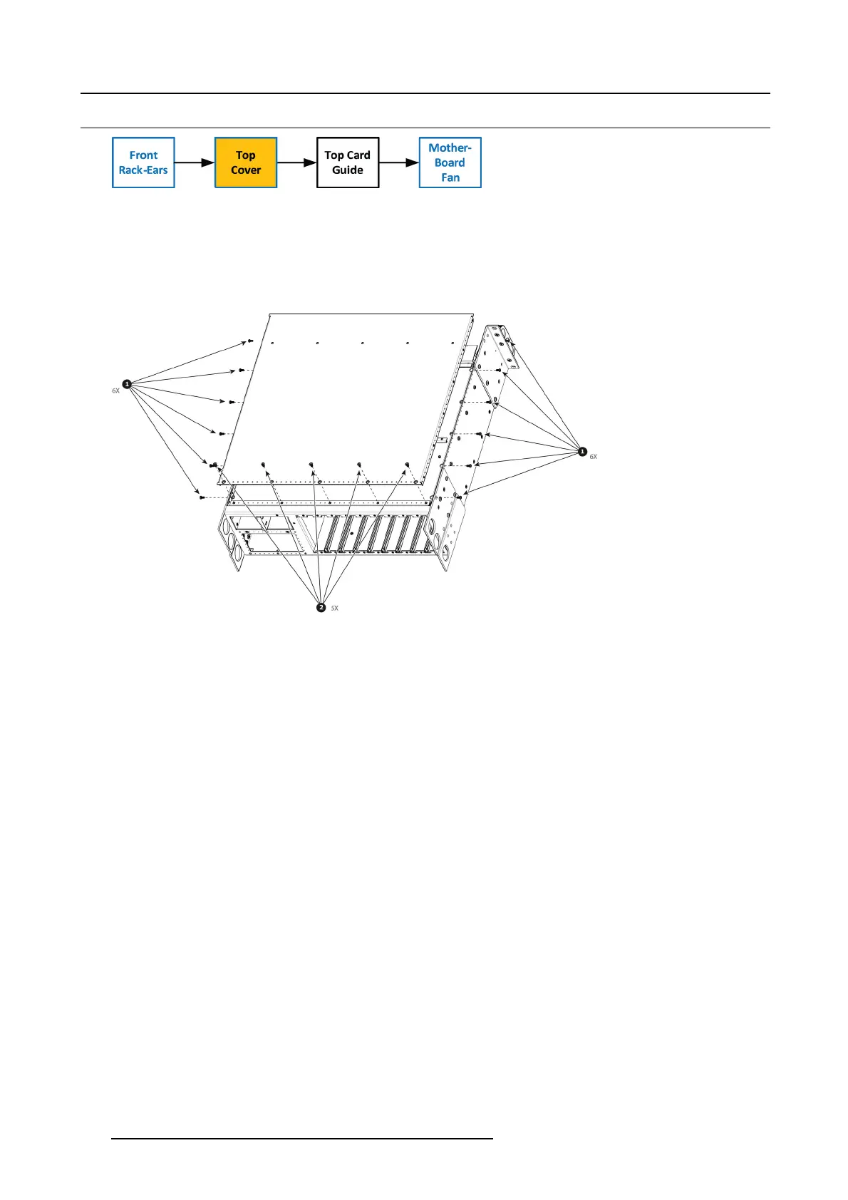 2. Remove the 5 screws (6-32x0.25) located on the top at the back of the chassis.