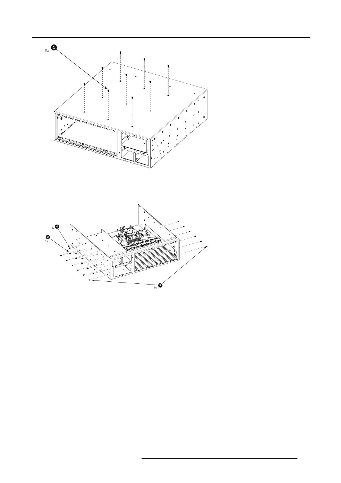 2. Remove the five pan head screws ( 4-40x0.25 — black) that attach the P ower supply guide to the side of the c hassis.