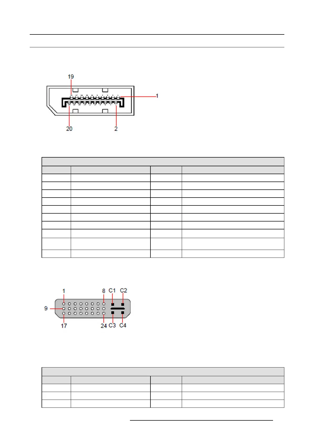 The following tables lists DVI Co nnector pinouts. Please note: