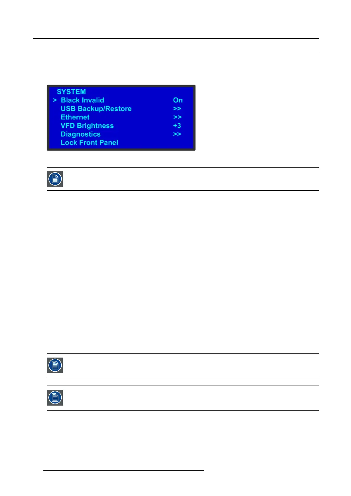 (>>), indicating that a s ubmenu is available. In the preceding illustration, USB Backup/Restore and Ethernet are two of