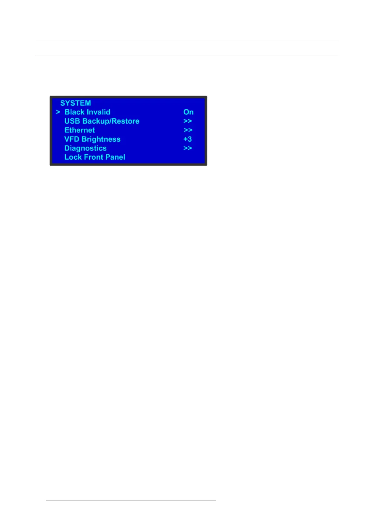 The Syst em M enu, s hown in the following illustration, allows you to view and c hange settings such as HDCP status and Ethernet