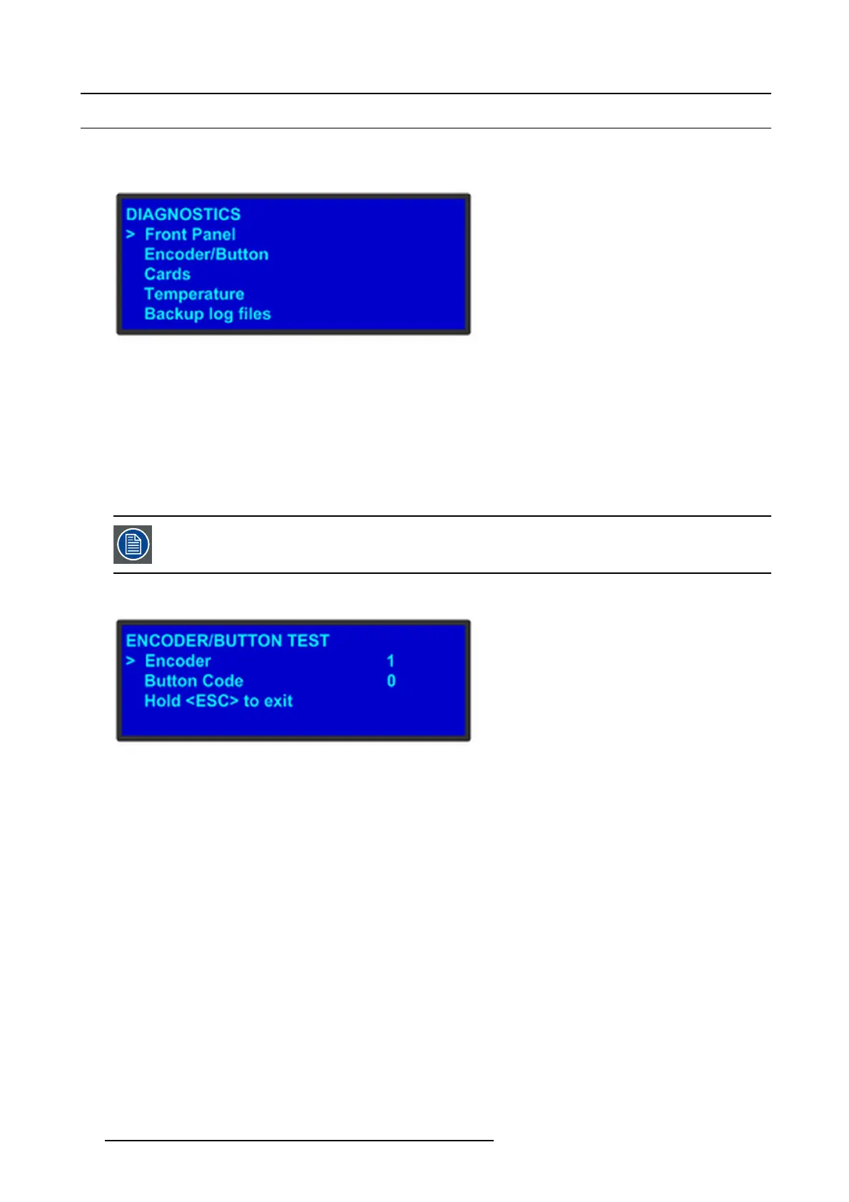 Directly select “Encoder/Button” from the Diagnostic m enu will allow the u ser to test the k eys and knob with-
