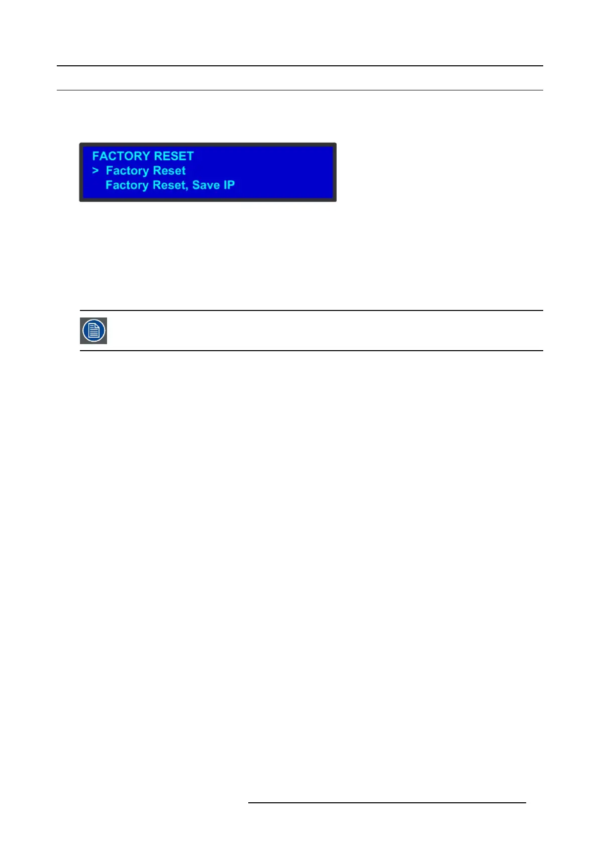 2. Select Factory Reset, Save IP.